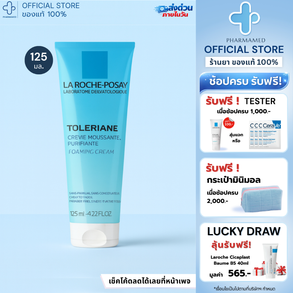 [ใส่โค้ดลดเหลือ🔥548.-] La Roche Posay Toleriane Purifying Foaming Cream Cleanser 125ml ลาโรช โพเซย์ คลีนเซอร์ ผิวบอบบาง