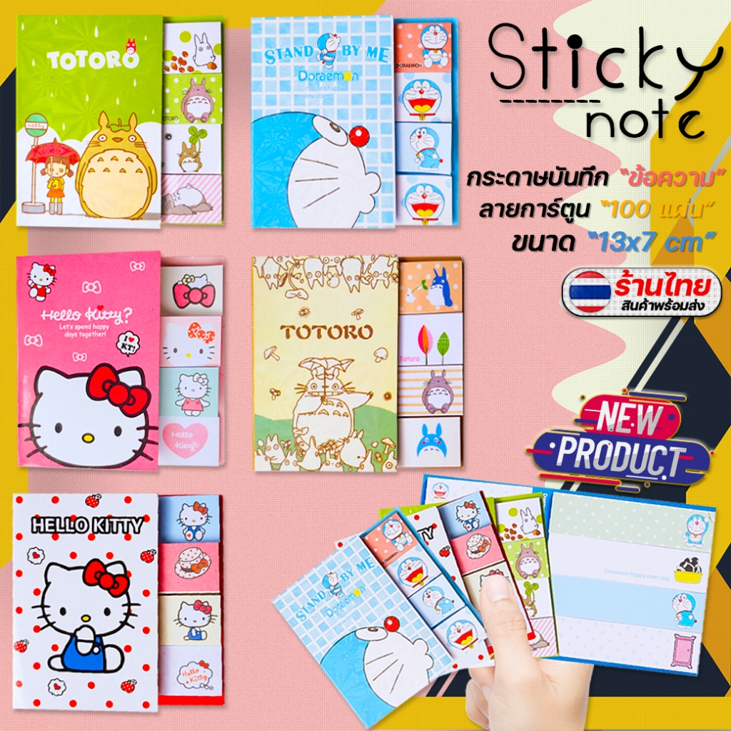 🌈กระดาษโน๊ตกาวในตัว Sticky Note⭐โพสท์อิทเล่มพับ 100แผ่น การ์ตูนดัง📌สินค้าพร้อมส่งในไทย กระดาษโน๊ต