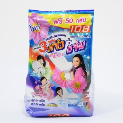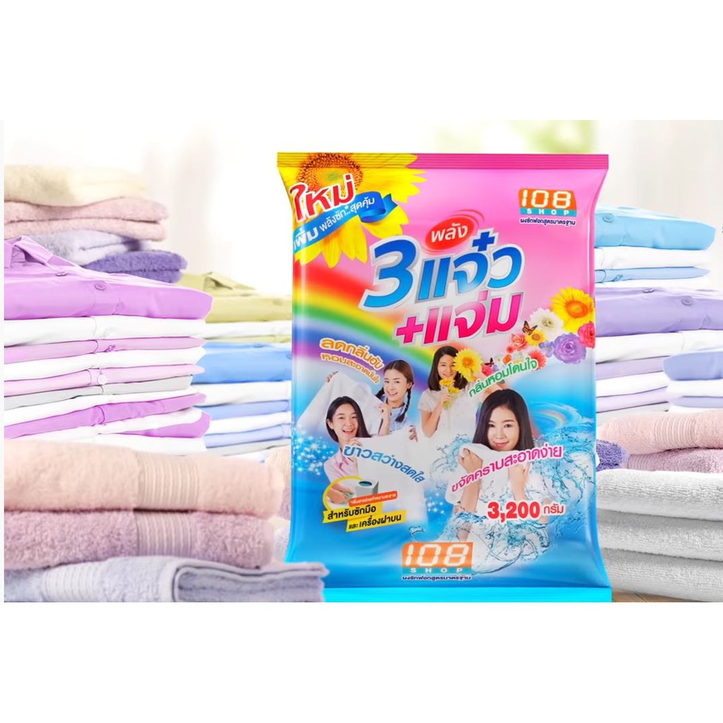 108 SHOP ผงซักฟอก 3 พลัง แจ๋ว+แจ่ม 350 กรัม ทำความสะอาดได้ทั้งผ้าขาวและผ้าสี