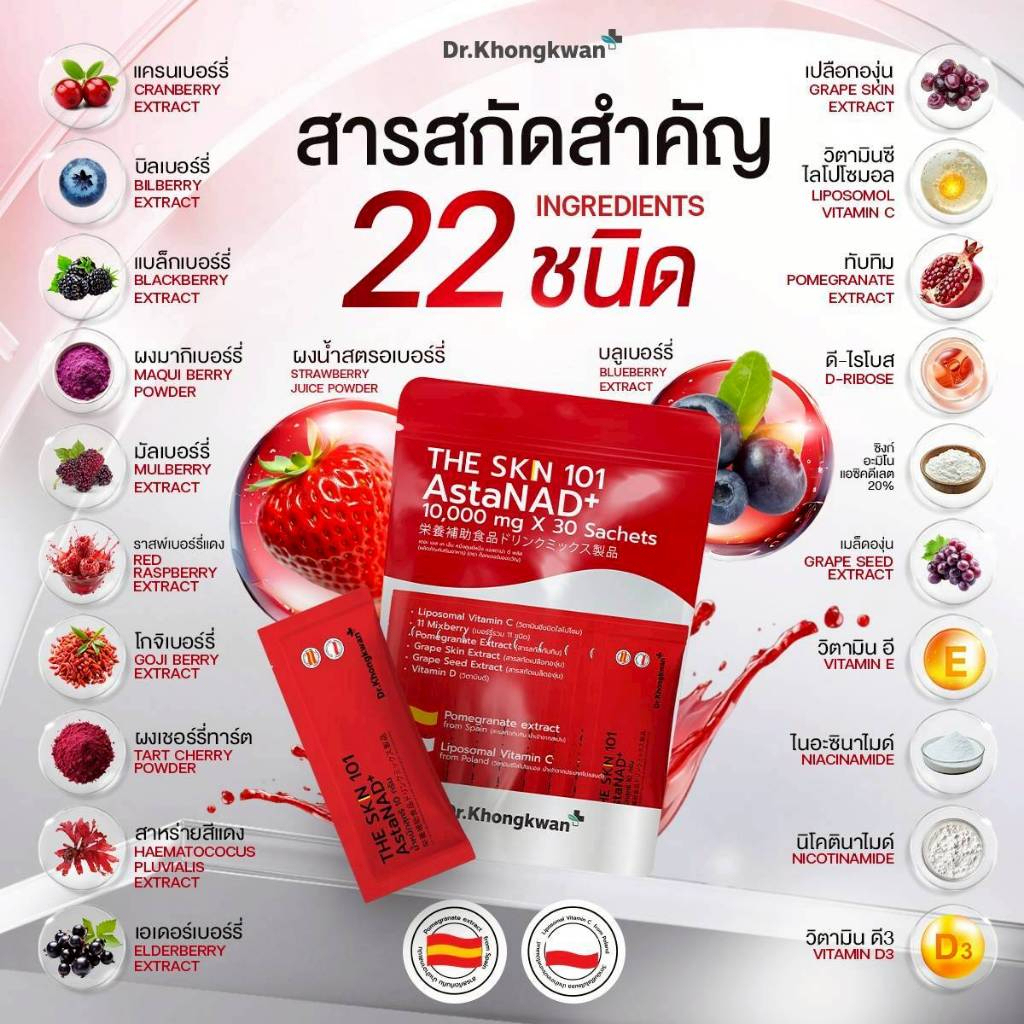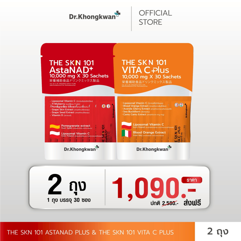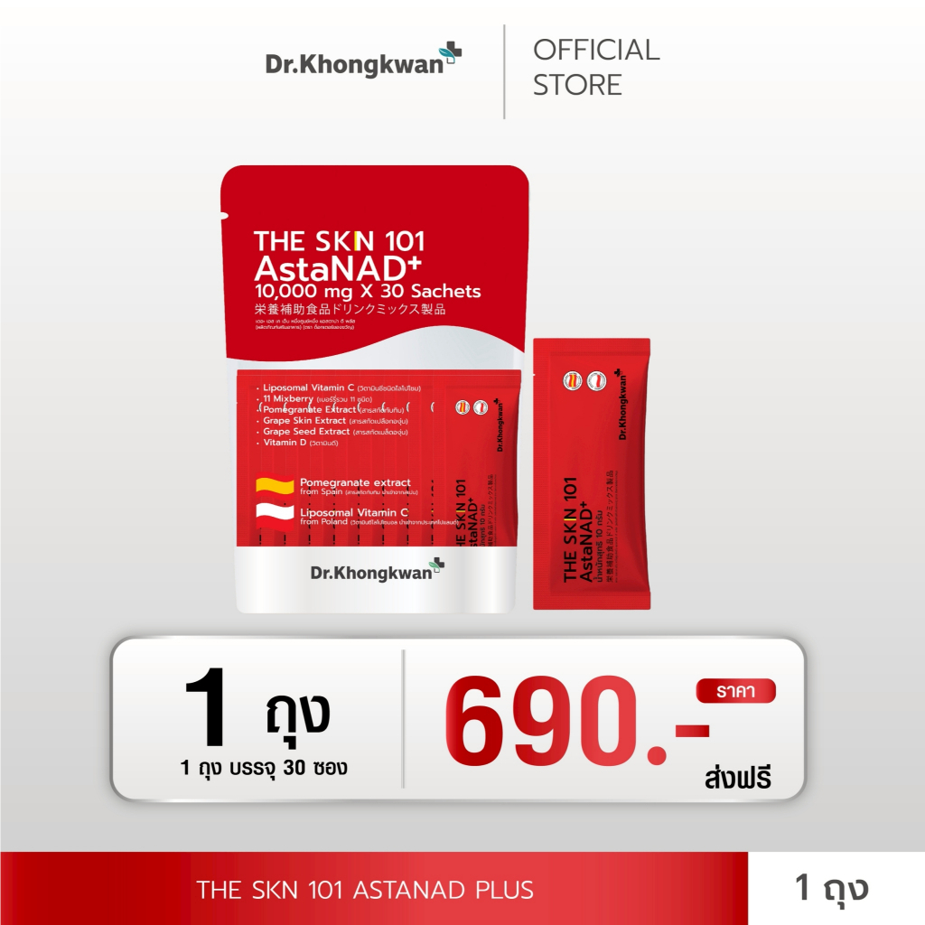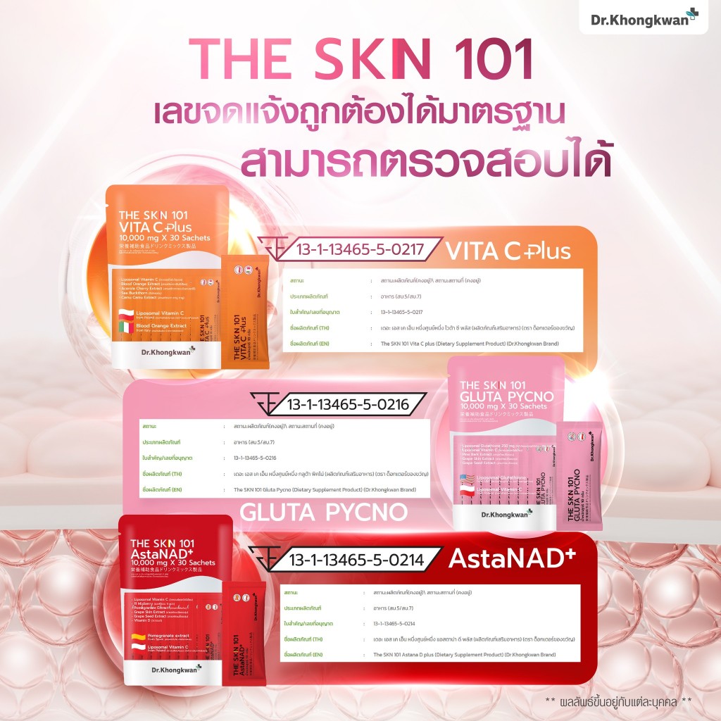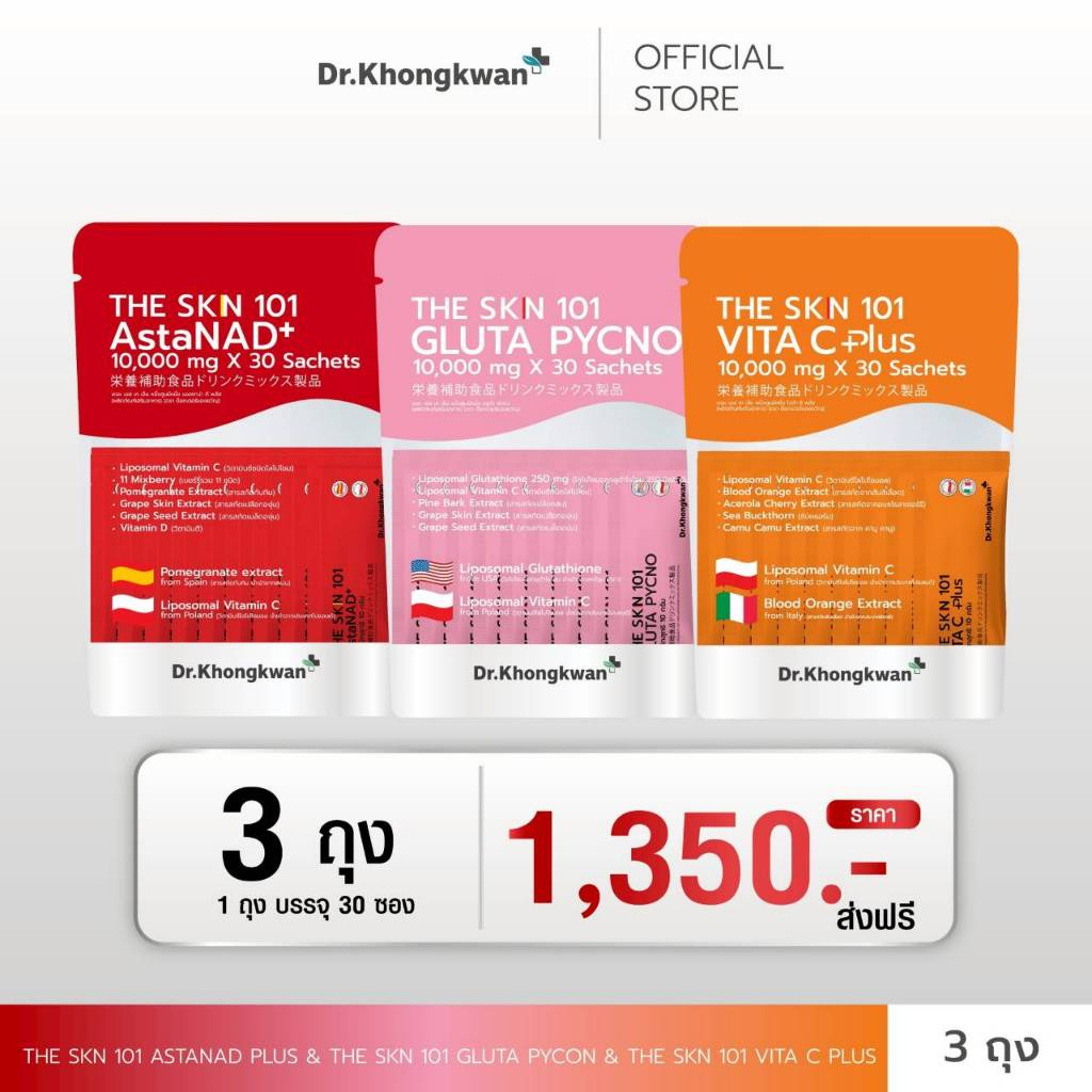 พร้อมส่ง ✅ Dr.Khongkwan The SKN 101 แอสตร้า กลูต้า วิตาซี ดร.ของขวัญ 1 ห่อ 30ซอง (รวม 3 สูตร)