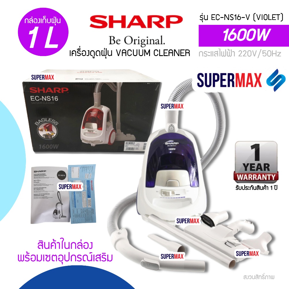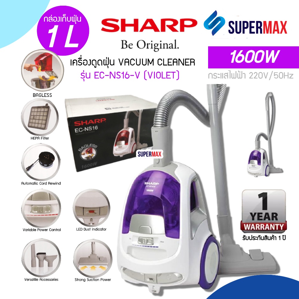 Sharp เครื่องดูดฝุ่น รุ่น EC-NS16-VL กำลังดูดถึง1600 วัตต์ (ม่วง) พร้อมแผ่นกรองฝุ่น HEPA Filter รับประกันสินค้า 1ปี