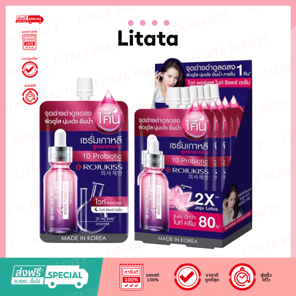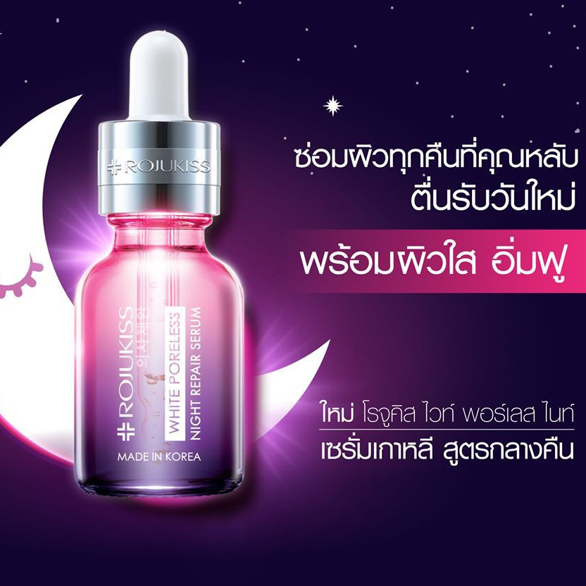 โรจูคิส ไวท์ พอร์เลส ไนท์ รีแพร์ เซรั่ม Rojukiss White Poreless Night Repair Serum 6 มล.