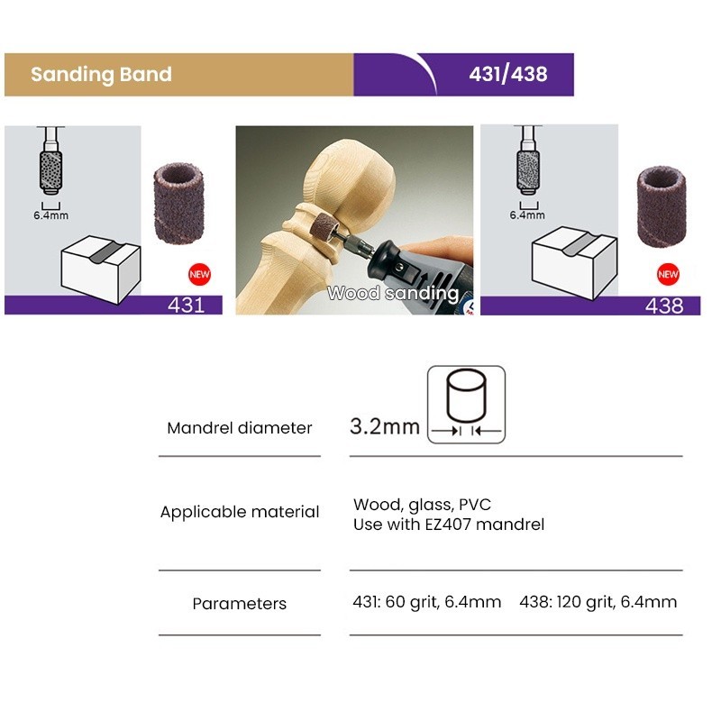 Dremel 431 60 Grit,438 แถบขัด 120-Grit,1/4 นิ้ว, 6-Pack