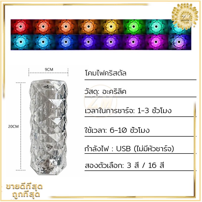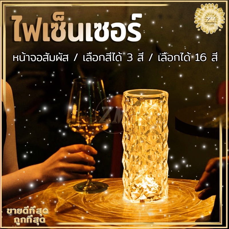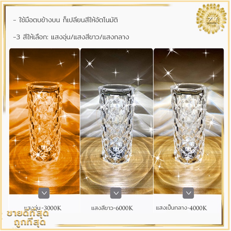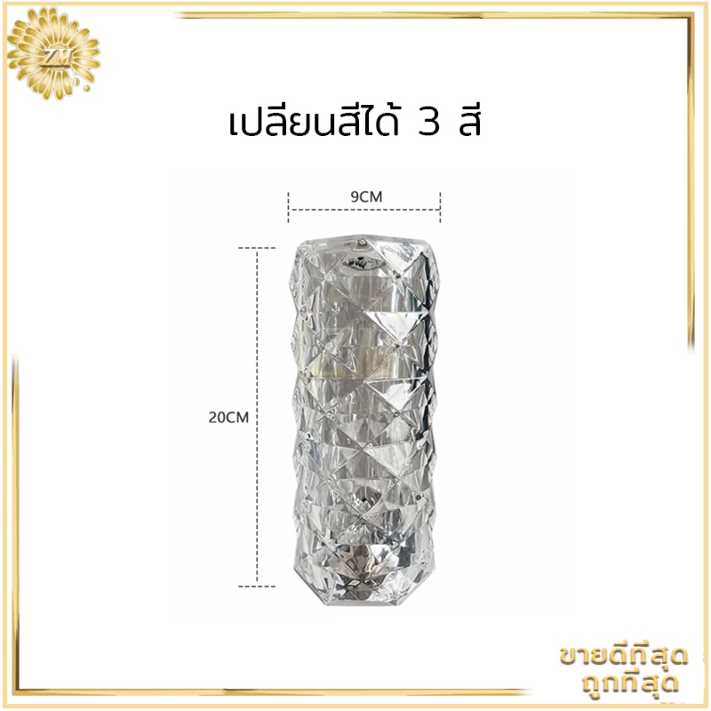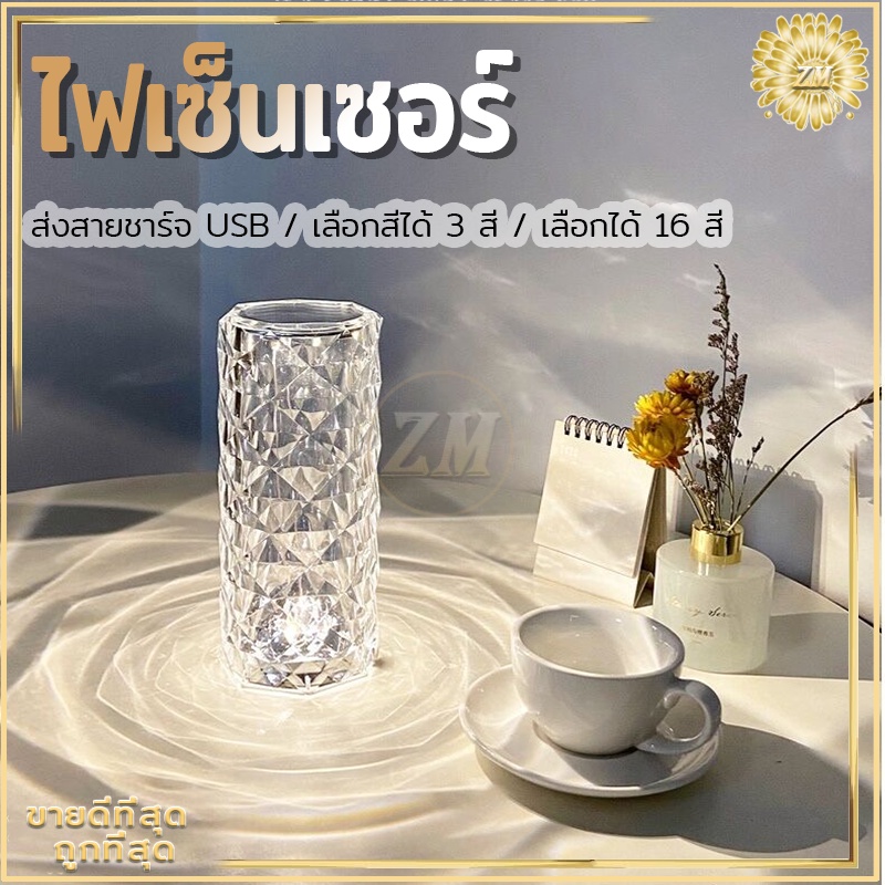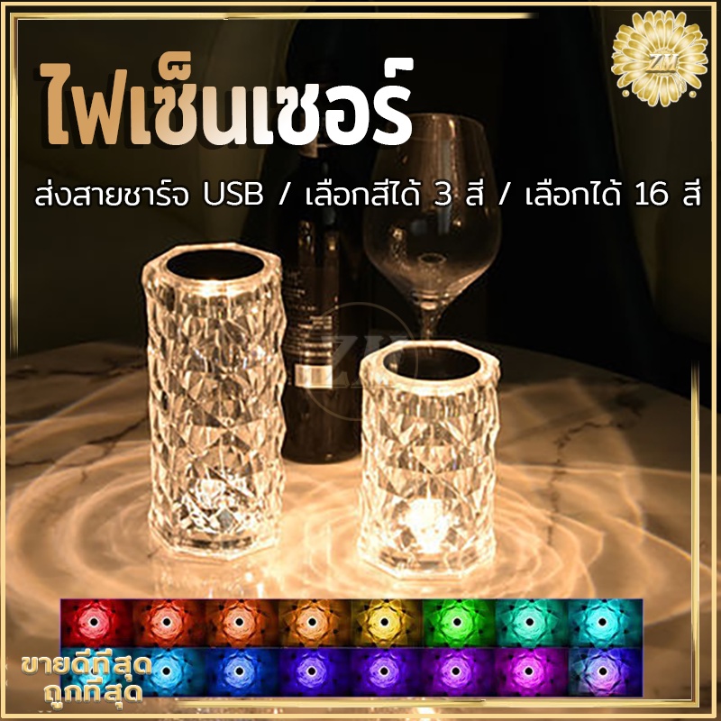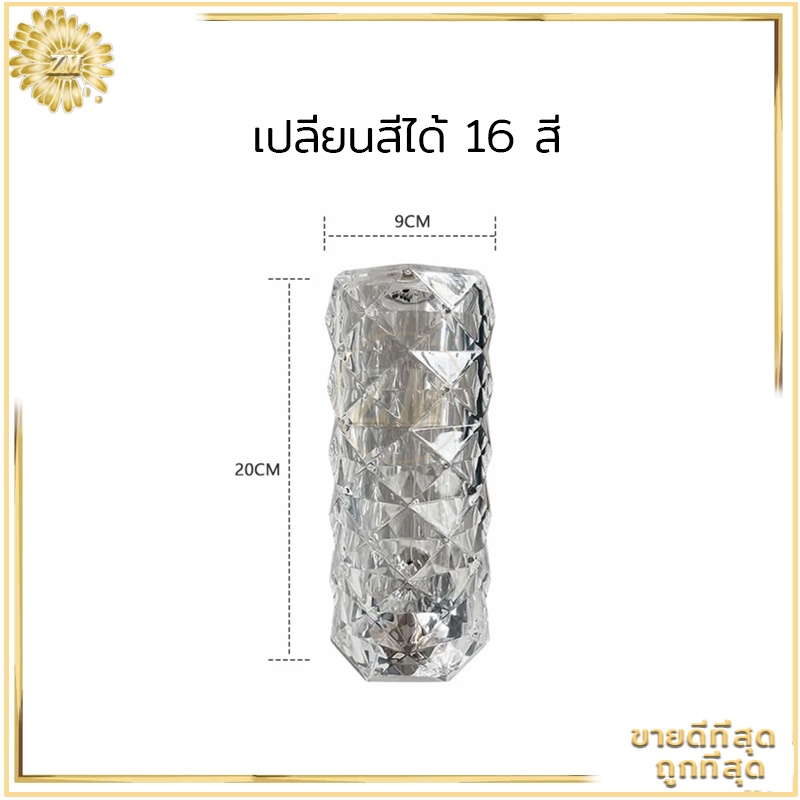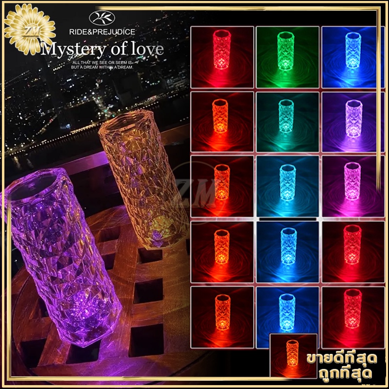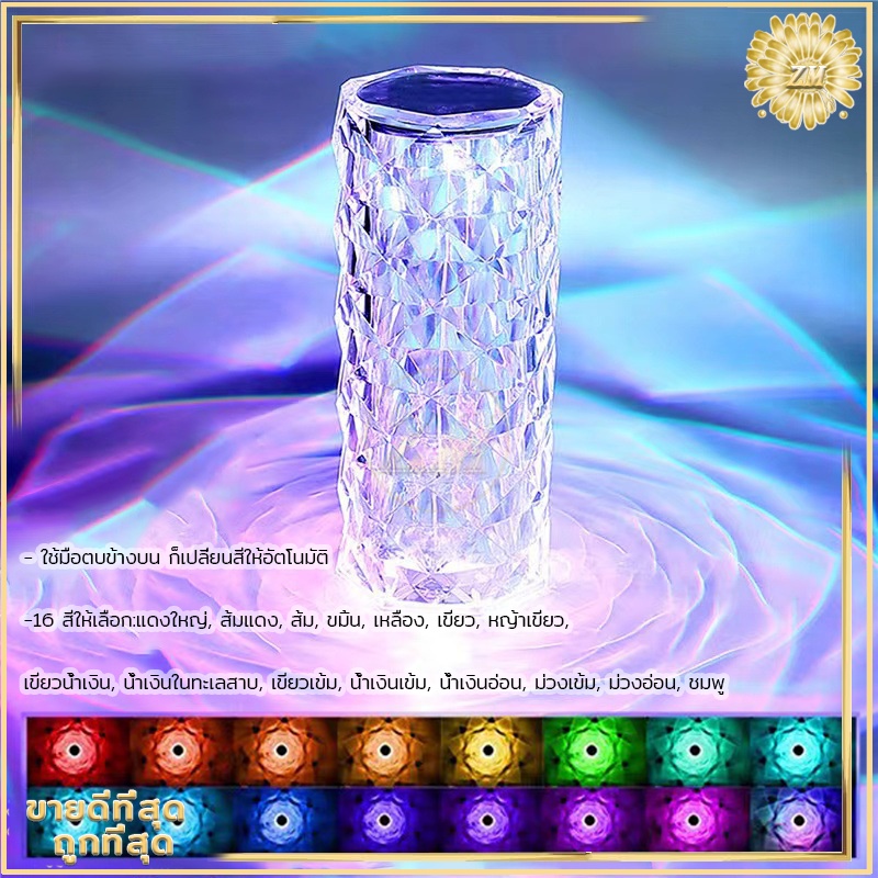 ไฟเซ็นเซอร์ โคมไฟคริสตัล แสงกุหลาบ โคมไฟตั้งโต๊ะ โมเดลลายกุหลาบ สวยหรูมากก สวิตช์เซ็นเซอร์สัมผัส ปรับได้ 16 สี