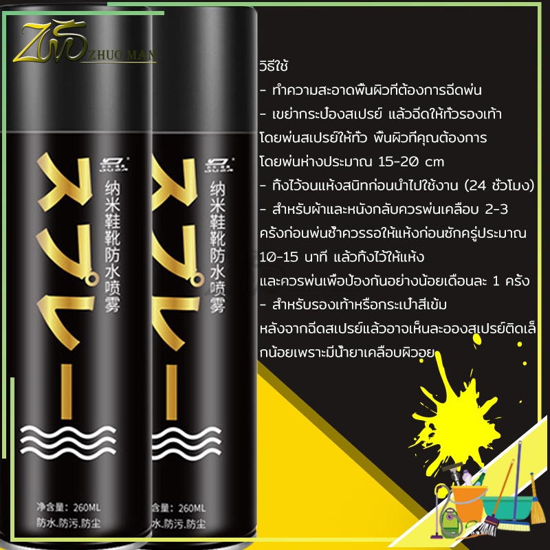 สเปรย์กันน้ำรองเท้า260MLสเปรย์นาโน ช้กันละอองน้ำและสิ่งสกปรก สามารถใช้กับผ้าหนังกลับ, ผ้าเต้นท์, กระดาษขึ้นรูป ได้คะ