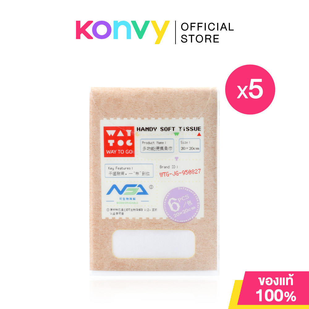 WAY TO GO Handy Soft Tissue [6pcs x 5 Pack] ทิชชู่พกพาเส้นใยวิสโคส เวย์ ทู โก นุ่ม เหนียว ไม่เป็นขุย.