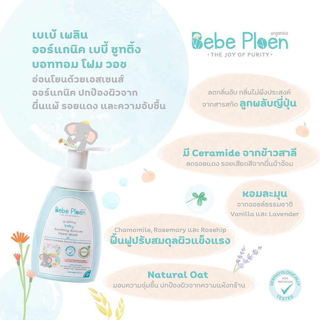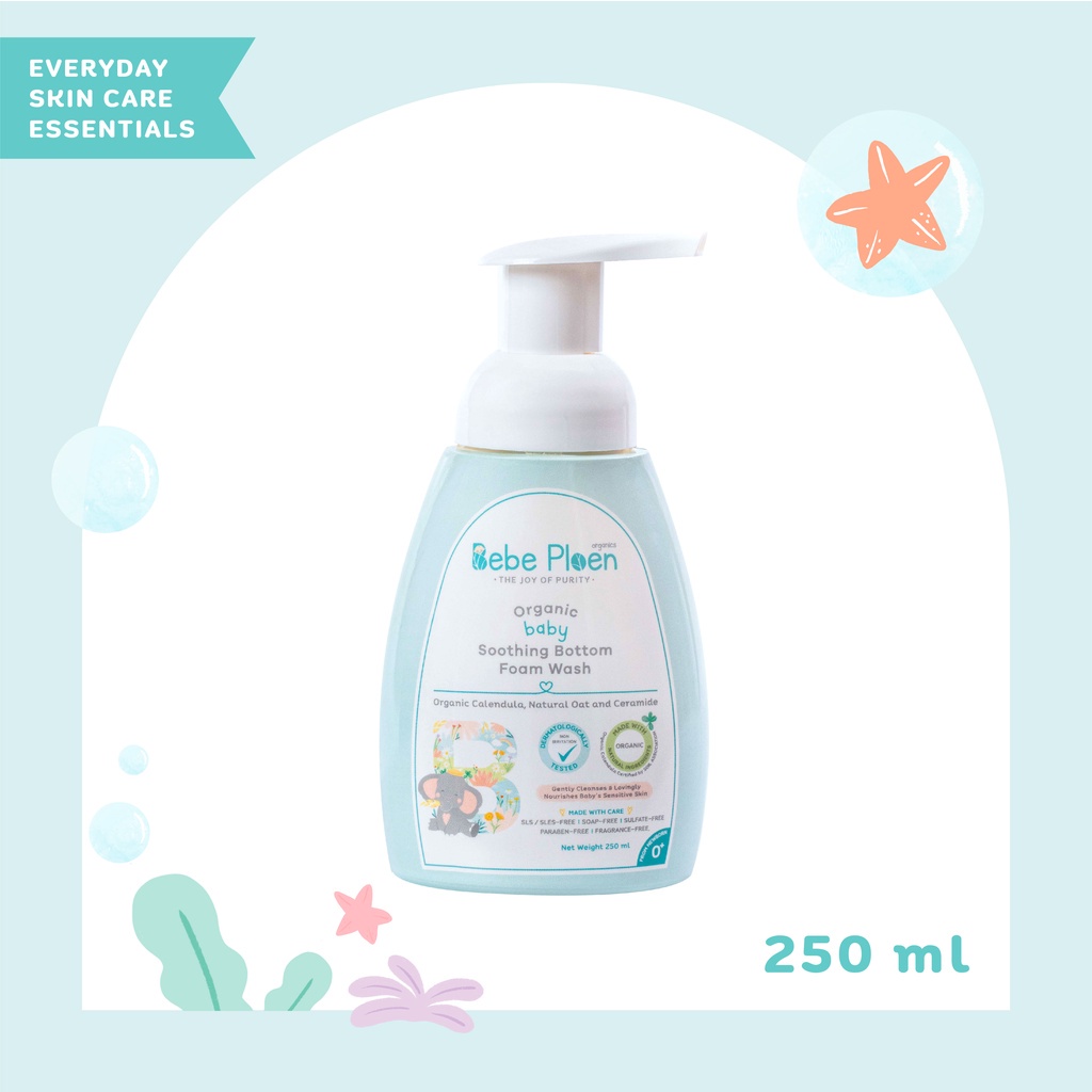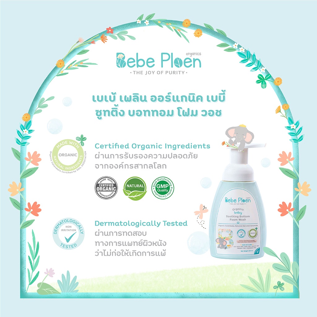 Bebe Ploen Organics Baby Soothing Bottom Foam Wash เบเบ้ เพลิน ออร์แกนิค โฟมทำความสะอาดก้นสูตรออร์แกนิค (250 ml)