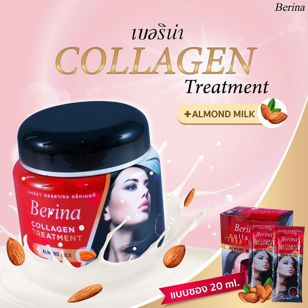 พร้อมส่ง (ซอง) Berina collagen almond milk treatment เบอริน่า คอลลาเจน ทรีทเมนต์ สำหรับผมเสียจากการทำเคมี ยืด ดัด ย้อม