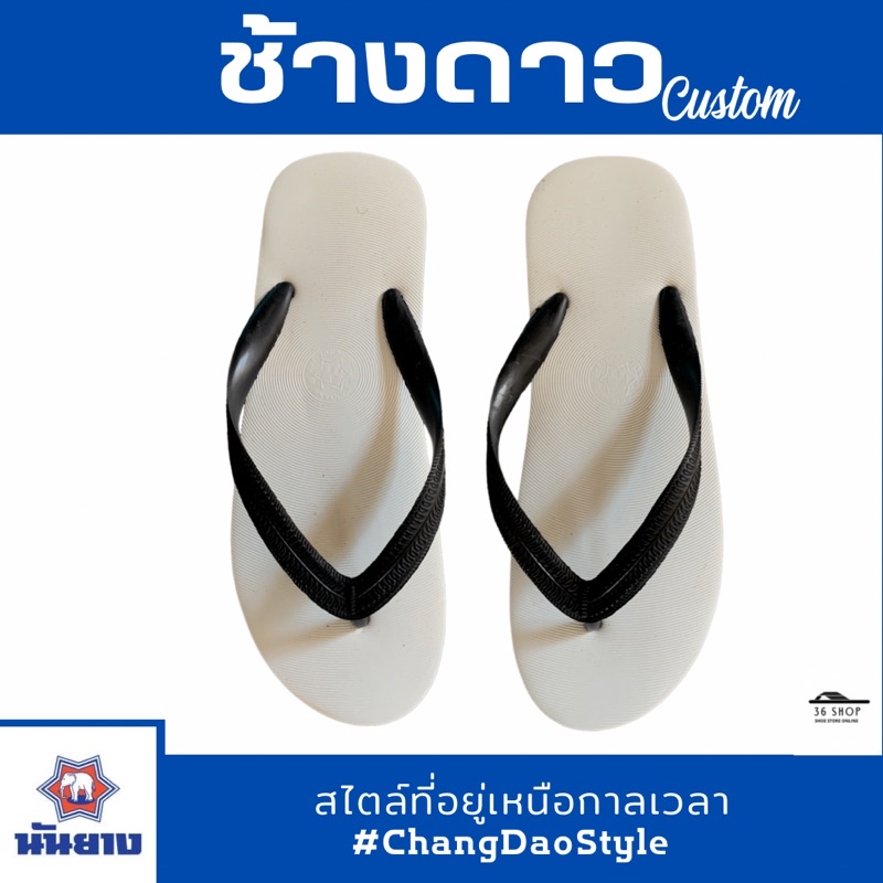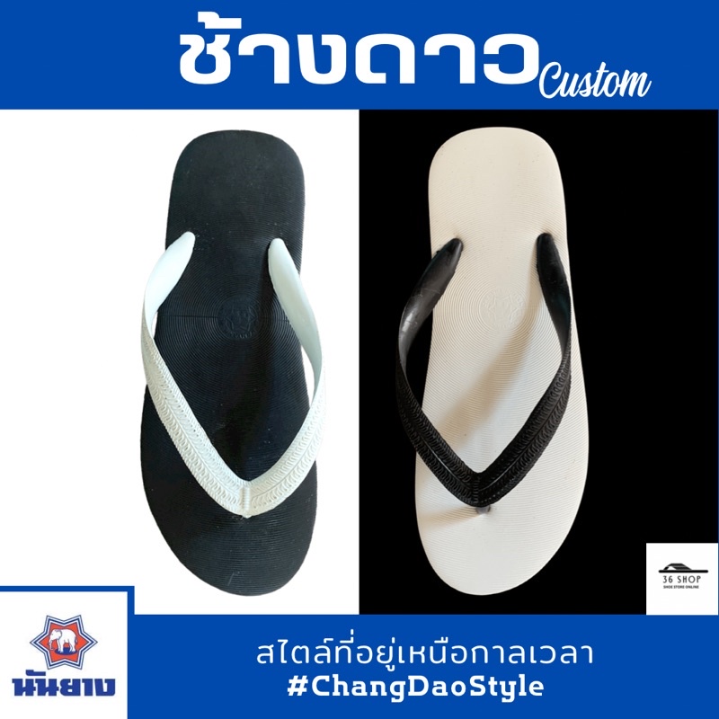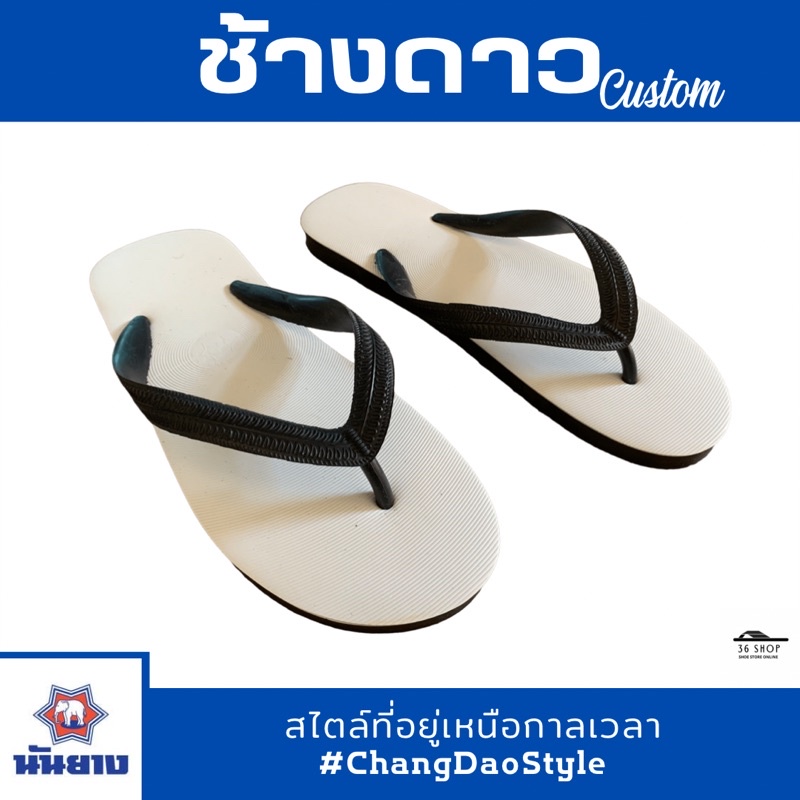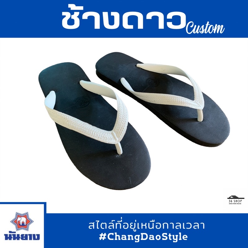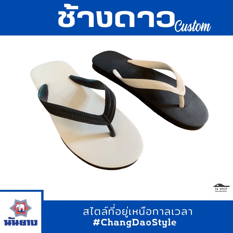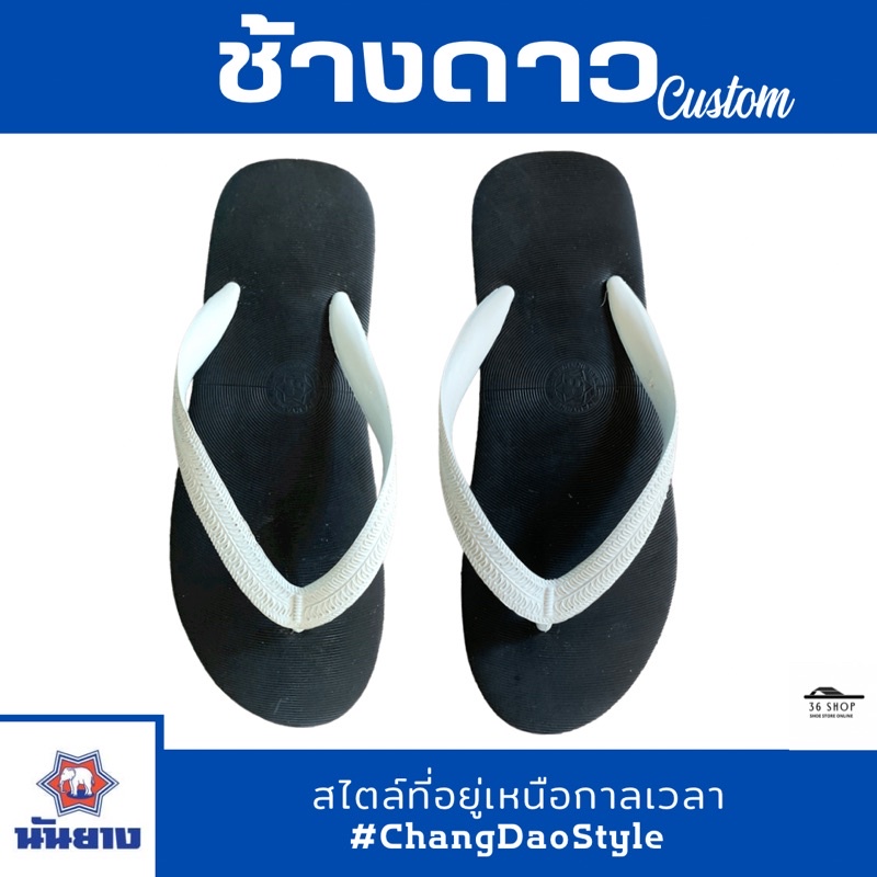 ส่งเร็ว! รองเท้าแตะหูคีบช้างดาว ของแท้ 100% แบบสลับสาย สลับสี สีทูโทน โทนสีขาว-ดำ งานแฮนด์เมด ไซส์ 9-11
