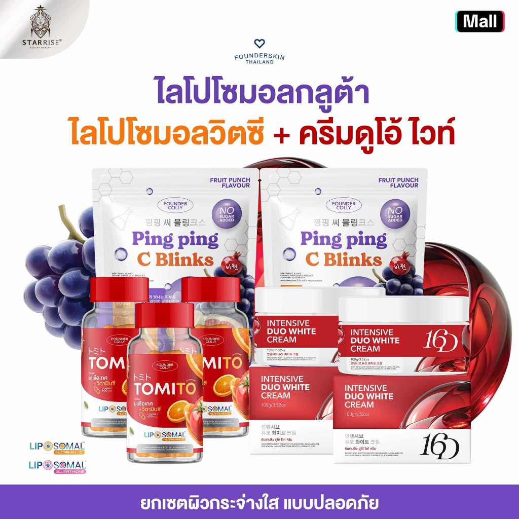 (กลูต้าปิ๊งปิ๊ง 2 ห่อ x ครีมปรุง 16d 2 กระปุก x Tomito 3 กระปุก ) เซต 7 ชิ้น