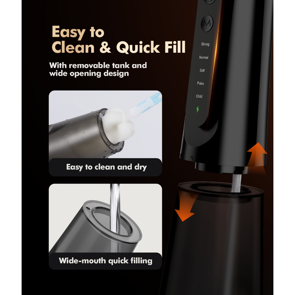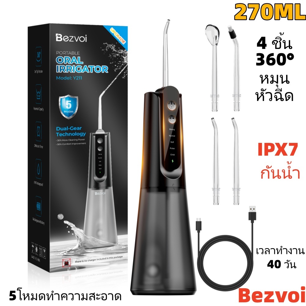 【จัดส่ง 24 ชั่วโมง】Bezvoi Y211 เครื่องชลประทานในช่องปากแบบชาร์จไฟได้ 5 โหมด, การดูแลทันตกรรมแบบพกพาสําหรับ Home & Travel, สีดํา เครื่องฉีดน้ำล้าง ฟัน ของขวัญปีใหม่ ไหมขัดฟันพลังน้ํา Portable Oral Irrigator Dental Water Flosser IPX7 กันน้ำ Function