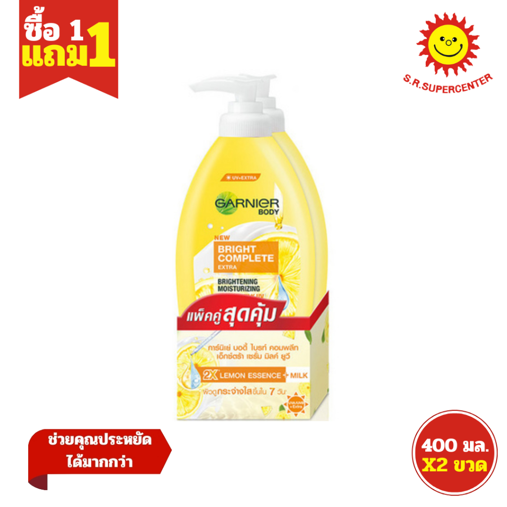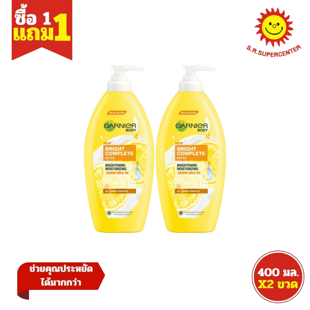 [ 1แถม1 ] Garnier การ์นิเย่ ไบรท์ คอมพลีท เอ็กซ์ตร้า ไบรท์เทนนิ่ง เซรั่ม มิลค์ยูวี ขนาด 400 มล. (แพ็คคู่1แถม1)