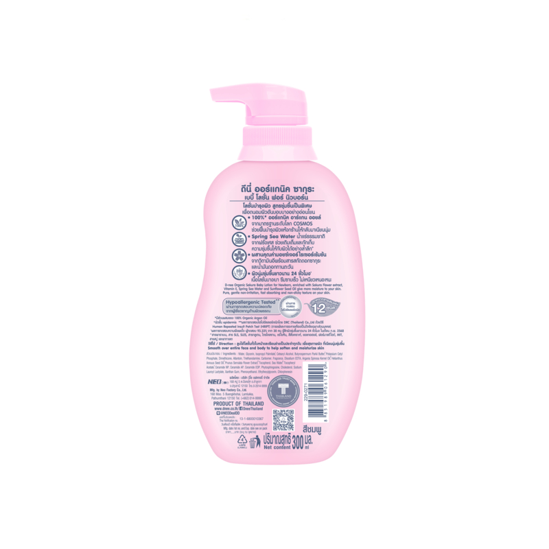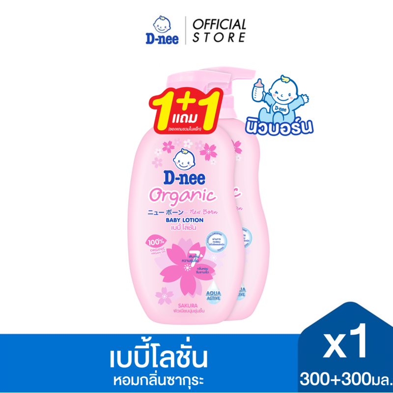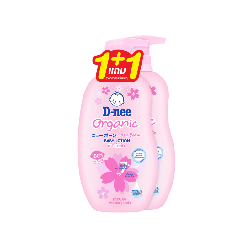 [แพ็คคู่] D-nee ดีนี่ ออร์แกนิค ซากุระ เบบี้โลชั่น 300 มล. + 300 มล.