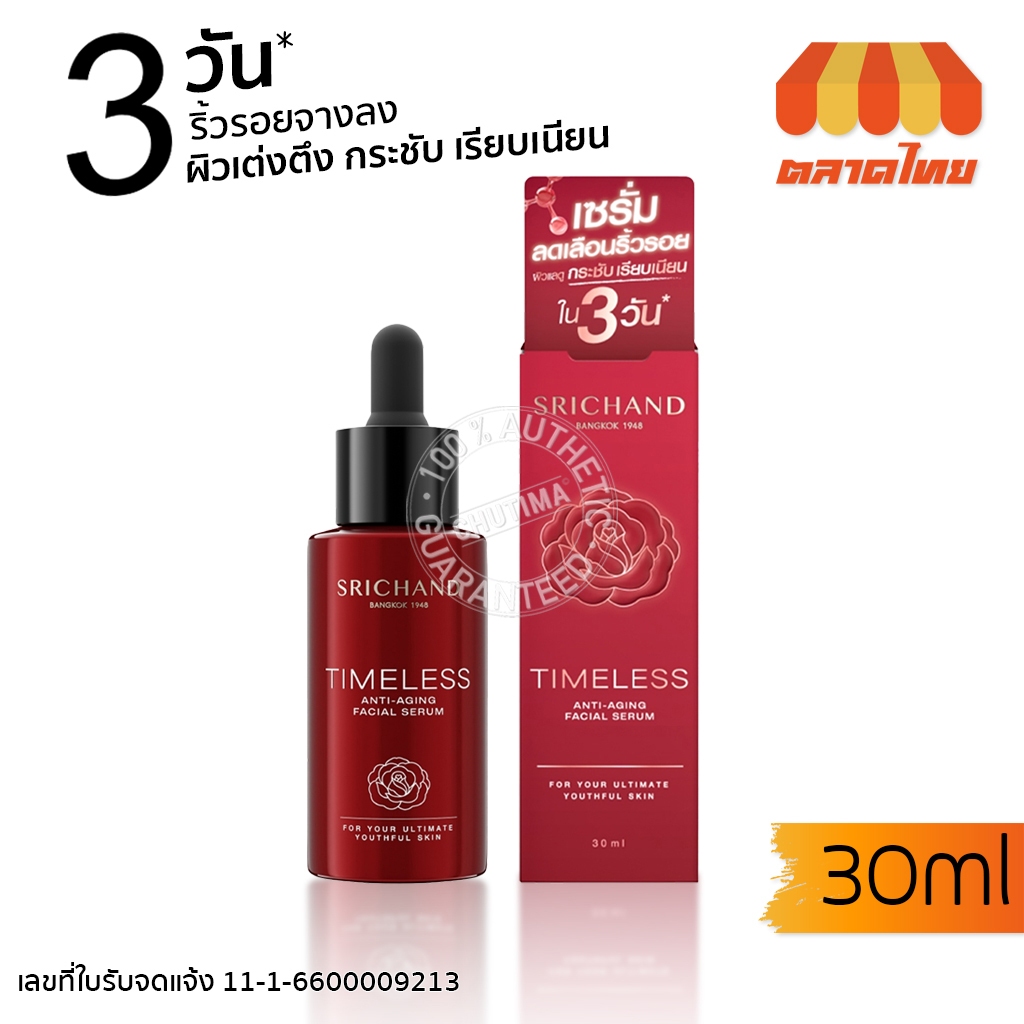 ศรีจันทร์ ไทม์เลส แอนตี้ เอจจิ้ง เฟเชียล เซรั่ม Srichand Timeless Anti-Aging Facial Serum 30 ml.