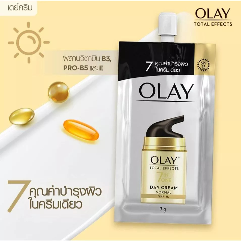 OLAY Total Effects 7 In 1 โอเลย์ โททัล เอฟเฟ็คส์ เดย์/ไนท์ ครีม /เซรั่ม แบบซอง 7ก. (กล่อง6ซอง)