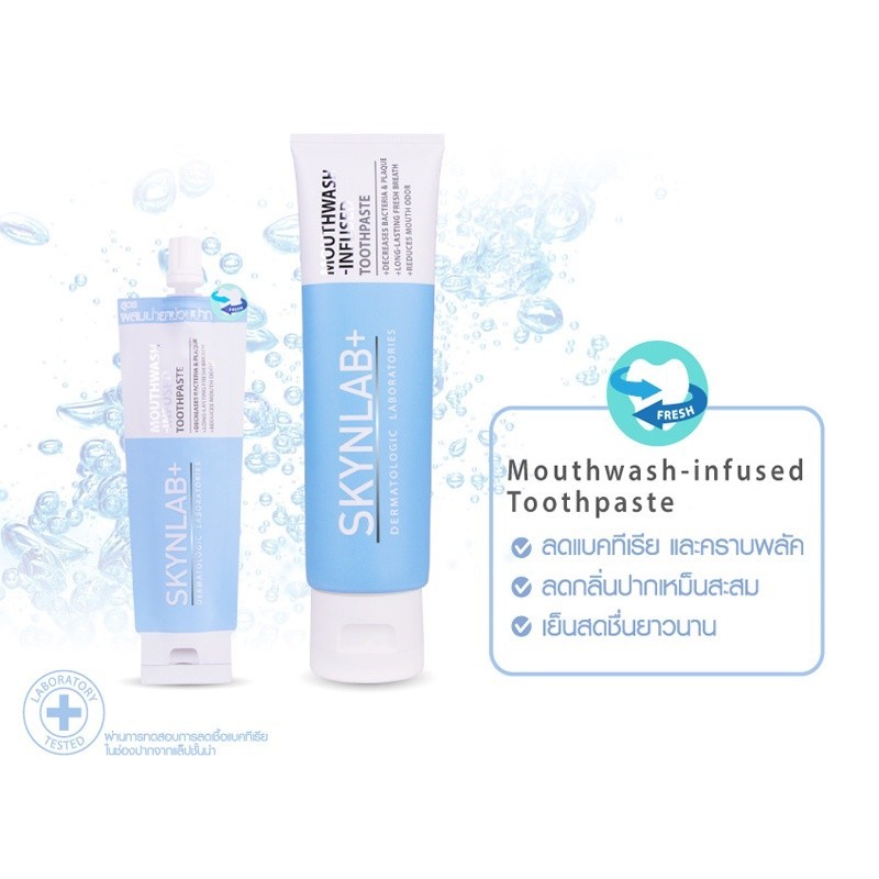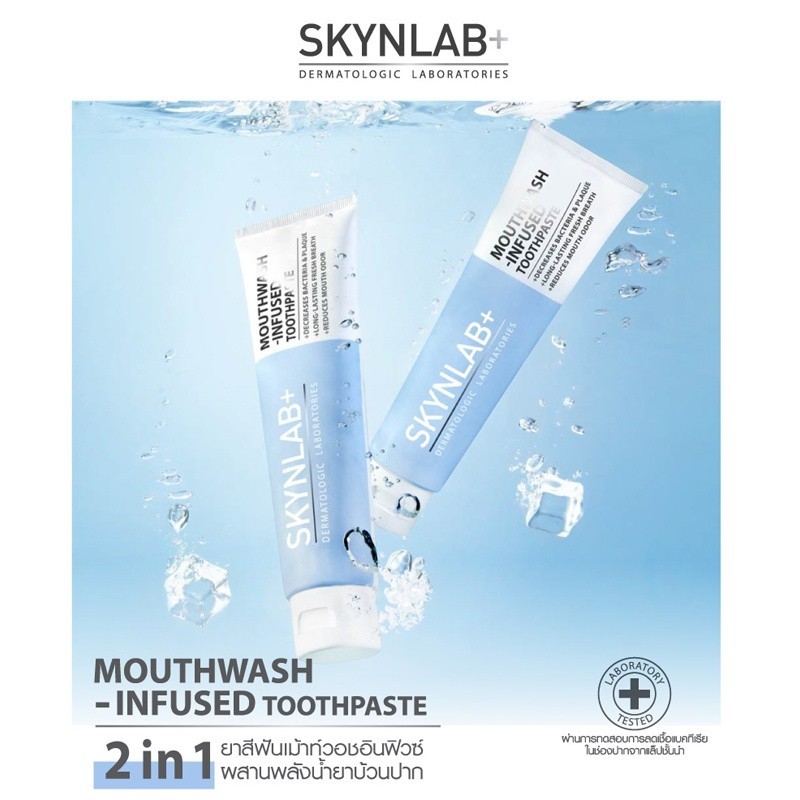 ( สีฟ้า ) Skynlab ยาสีฟันเม้าท์วอชอินฟิวซ์ 2in1 ยาสีฟันเม้าท์วอชผสานน้ำยาบ้วนปาก ราคาต่อ 1 ชิ้น