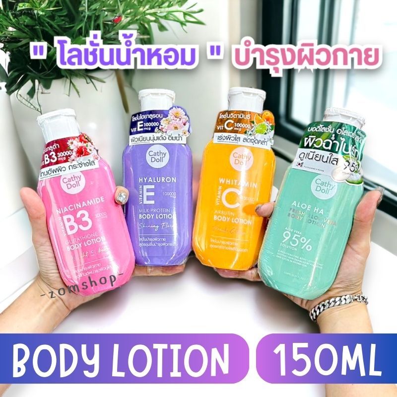 Cathy Doll【ขวดแบน】โลชั่นบำรุงผิวกาย โลชั่นน้ำหอม Hyaluron Vitamin E Milk Protein Body Lotion 150ml