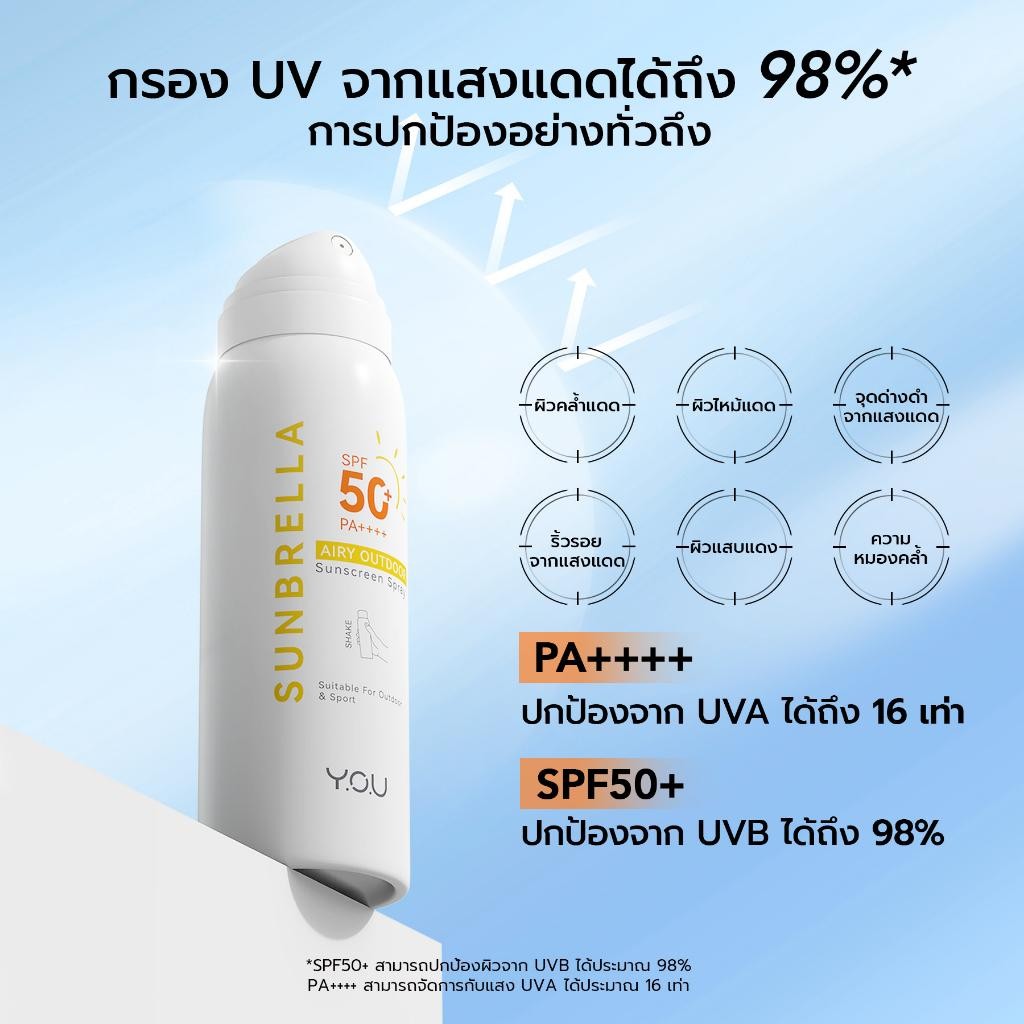 YOU Airy Outdoor Sunscreen Spray SPF 50+ PA ++++ YOU สเปรย์กันแดด สำหรับผิวหน้า และผิวกาย 50ml