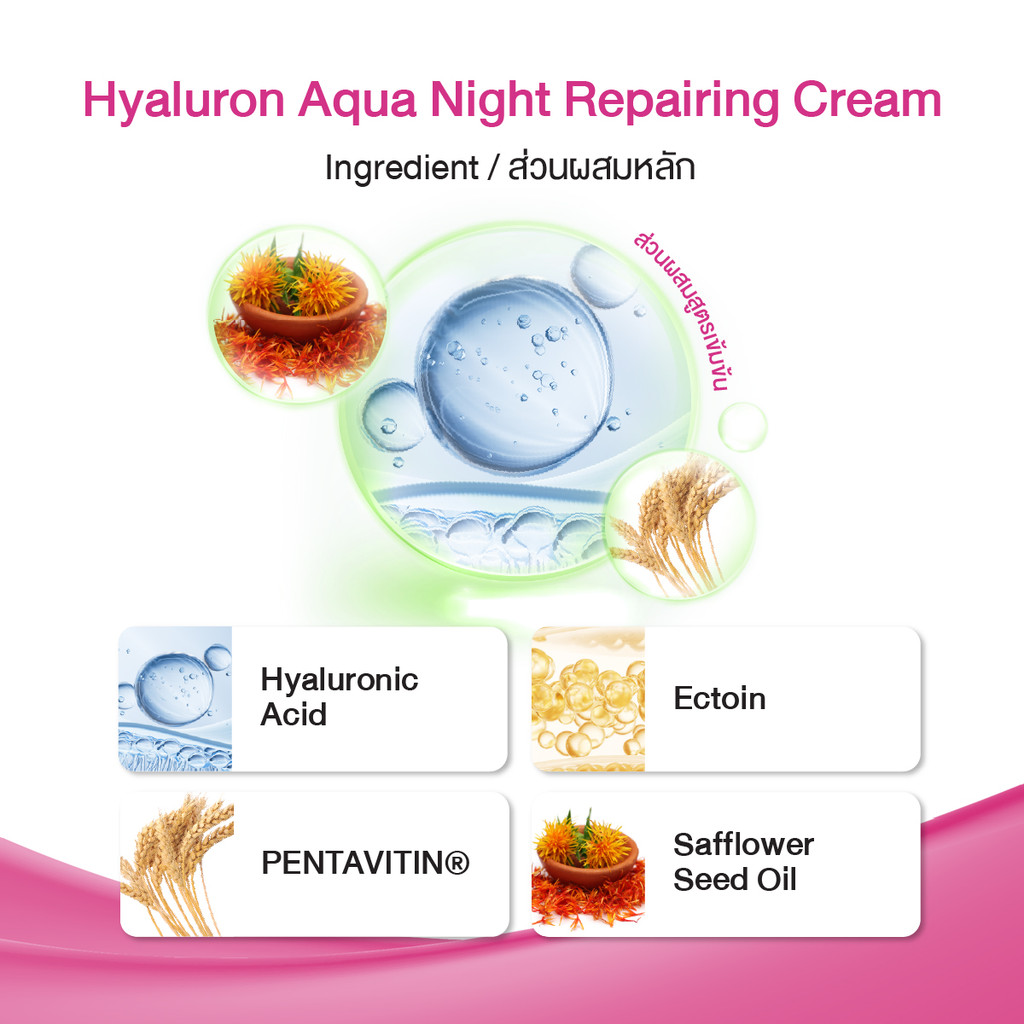 Naturista Hyaluron Aqua Night Cream เจลครีมเติมน้ำ ผิวฉ่ำเด้ง อิ่มฟู ยาวนาน 72 ชม. 30ml