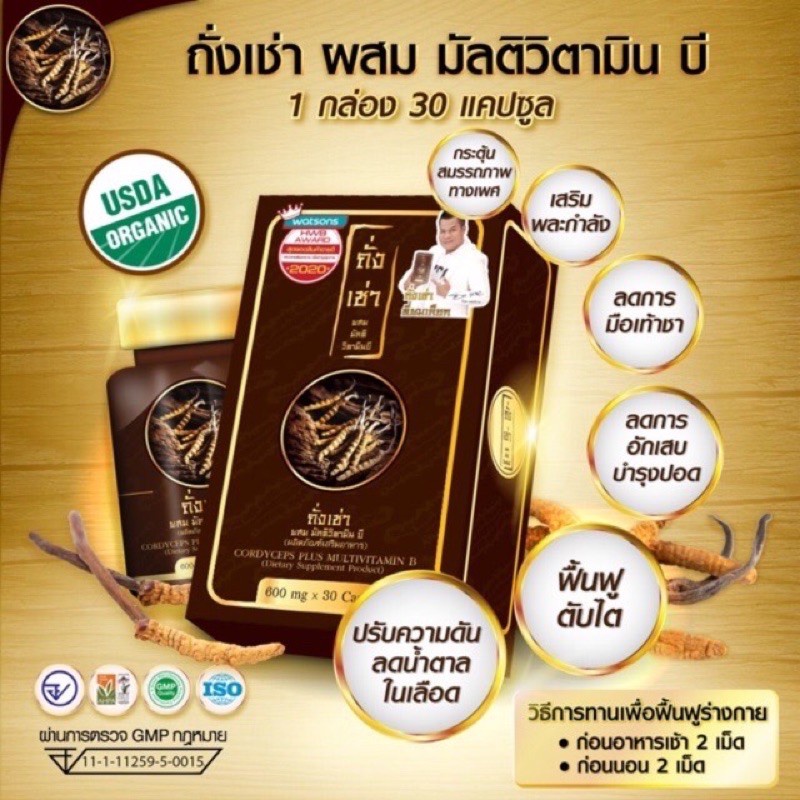 ถั่งเช่ายิ่งยง ถั่งเช่า ผสม มัลติ วิตามินบี (30 เม็ด)
