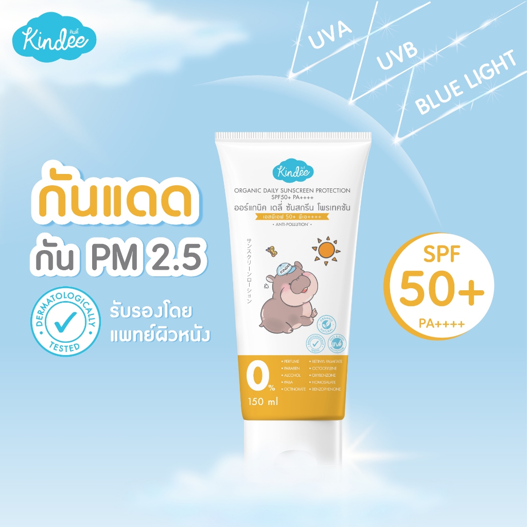 Kindee คินดี้ โลชั่นกันแดด ออร์แกนิค SPF50+ PA++++ ปกป้องลูกน้อยจาก PM 2.5 (150 มล.)