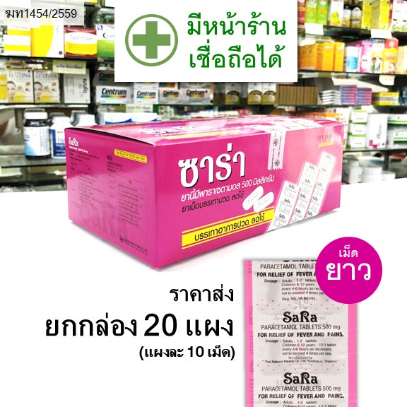 [ขายส่ง - ยกกล่อง 20 แผง -- รวมกล่องละ 200 เม็ด] ซาร่า Sara (เม็ดยาว) --- ซารา ซาล่า Zara พารา เซ ตา มอน pa ra ce ta mol ปวด ไข้ เม็ด แก้ หัว บรร เทา อาการ ยาว รี