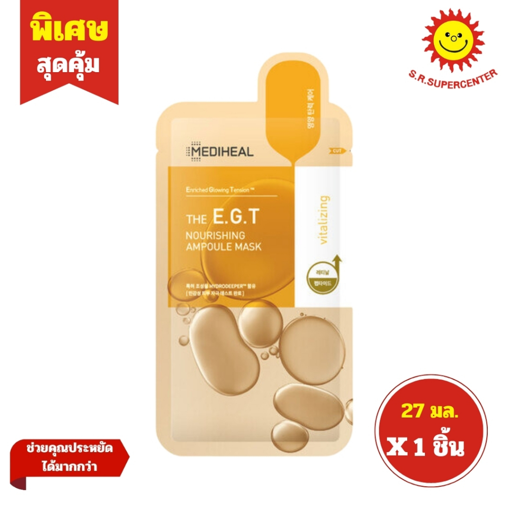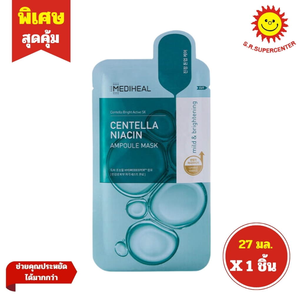 [ 1ชิ้น ] Mediheal Ampoule Mask เมดิฮีล แผ่นมาสก์หน้าแอมพูล ขนาด 27 มล. (1ซอง) คละสูตร