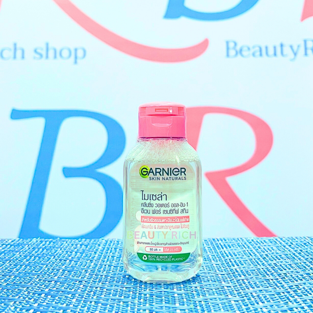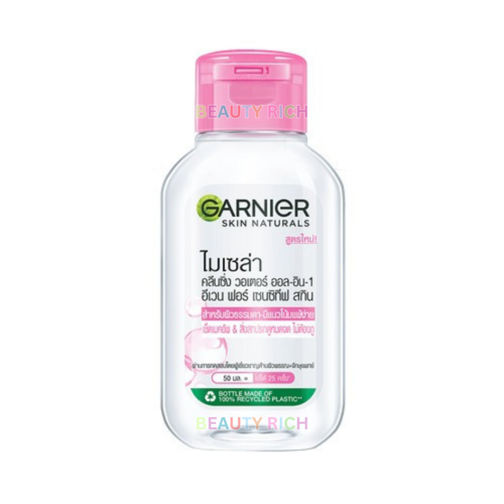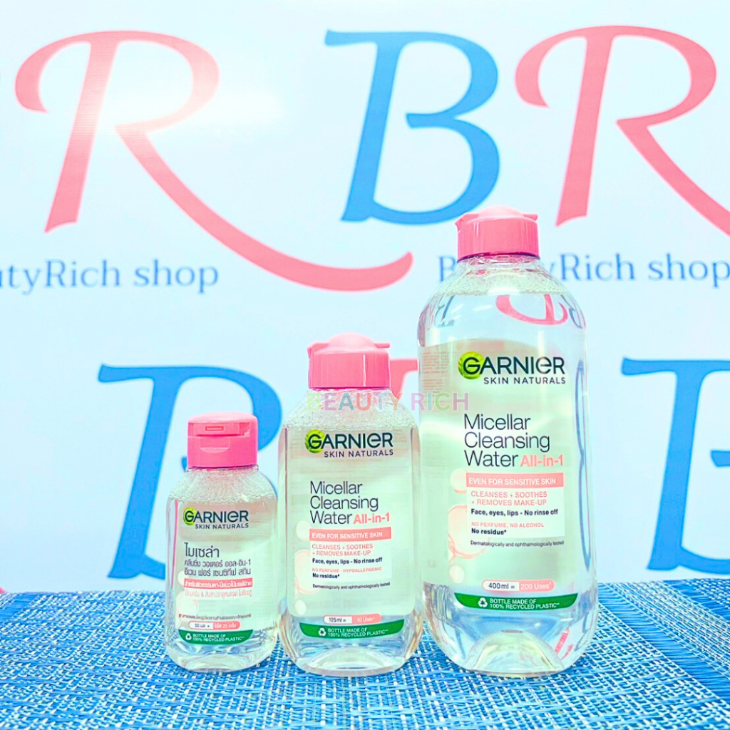 (1 ขวด) GARNIER MICELLAR CLEANSING WATER คลีนซิ่ง วอเตอร์ #ขวดสีชมพู (ปริมาณ 50 ml./125 ml./400 ml.)
