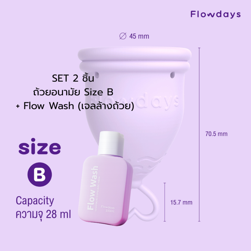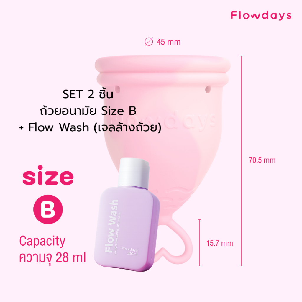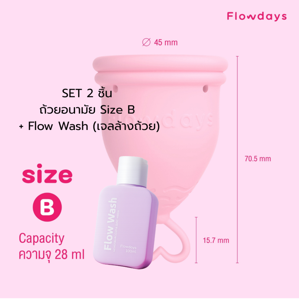 (ส่งด่วน) ถ้วยอนามัย FlowDays SizeB Heavy flow 6 สี เลือกสีได้ ใช้งานง่าย สบาย ใช้ซ้ำได้