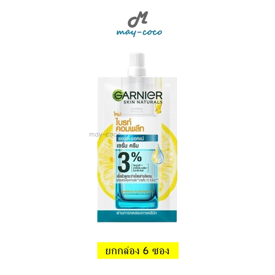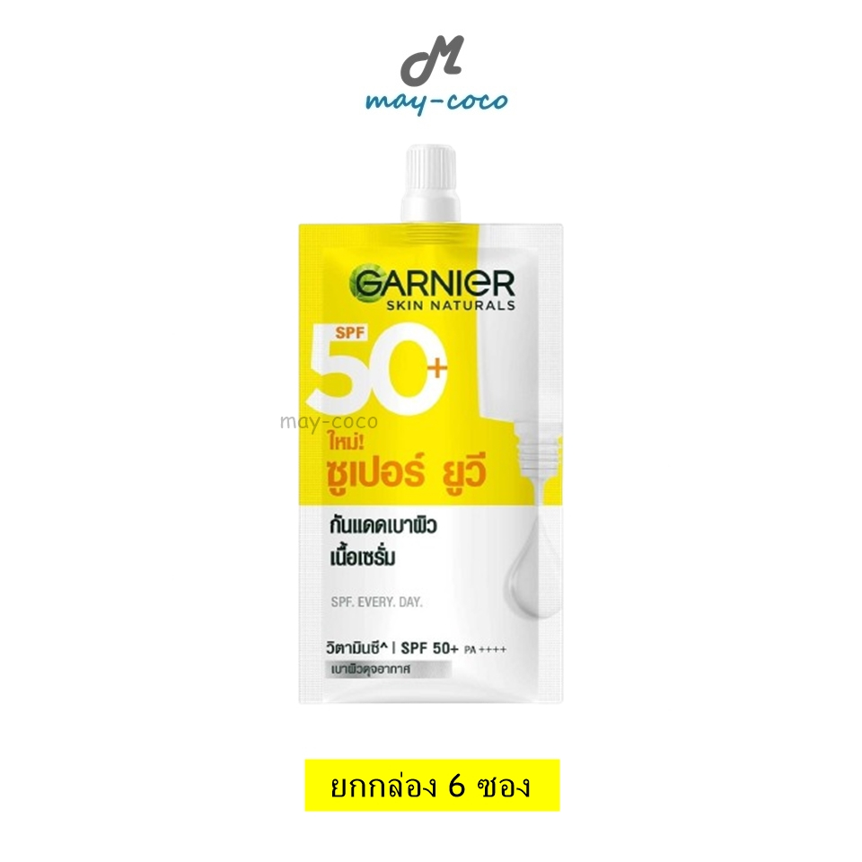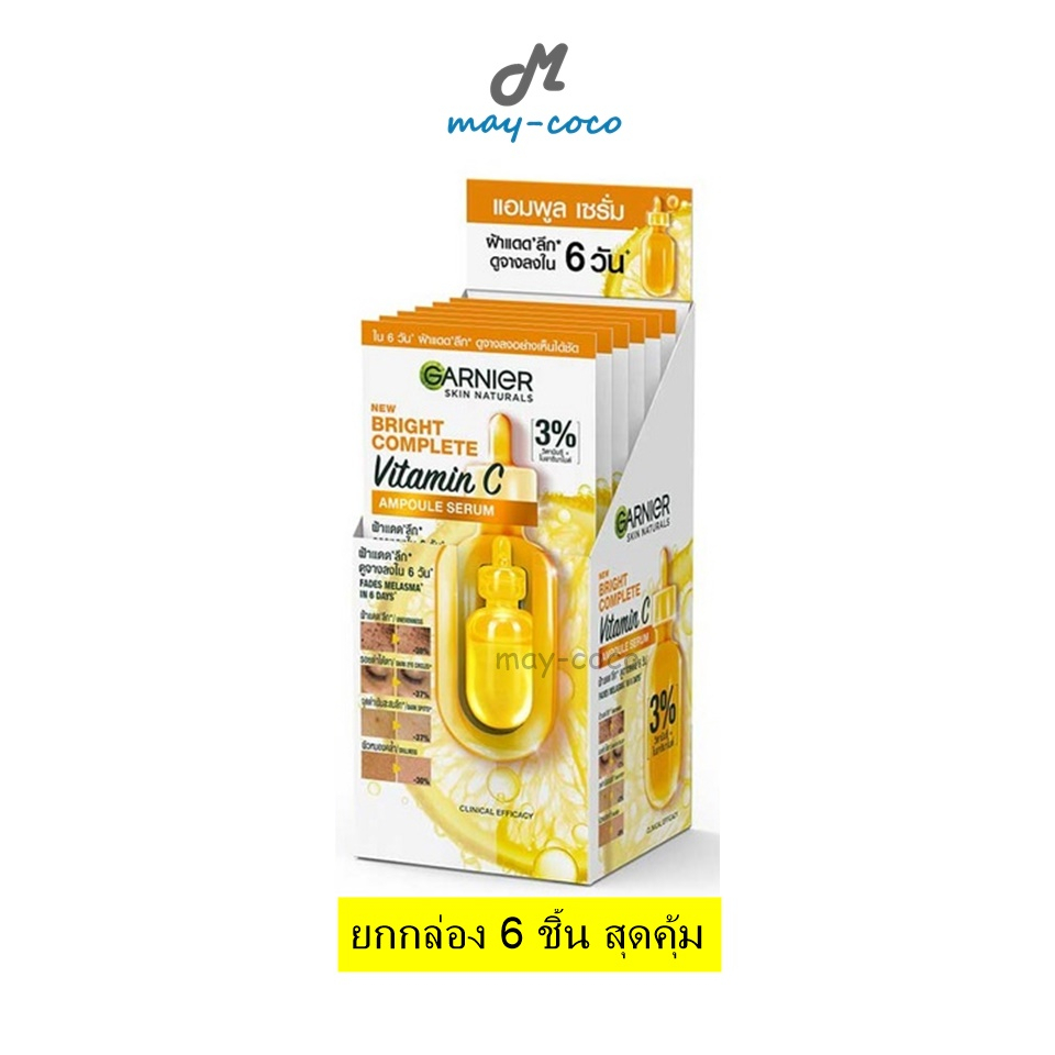 ถูก/แท้/มีไลฟ์ (ยกกล่อง 6 ซอง) แอมพูล กันแดด เซรั่ม Garnier Skin Naturals บำรุงผิวหน้า กระจ่างใส ลดจุดด่างดำ ชุ่มชื้น
