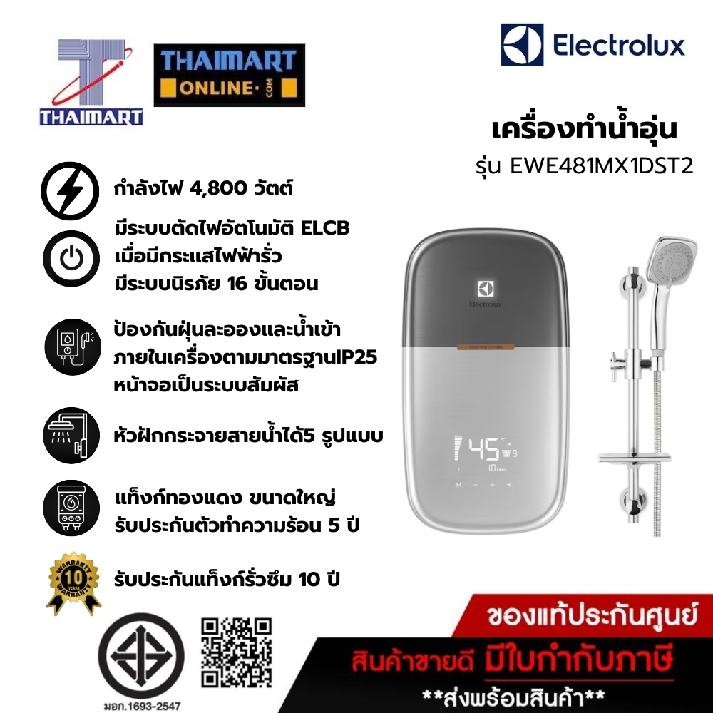 ELECTROLUX เครื่องทำน้ำอุ่น 4800 วัตต์ Electrolux EWE481MX1-DST2 | ไทยมาร์ท THAIMART