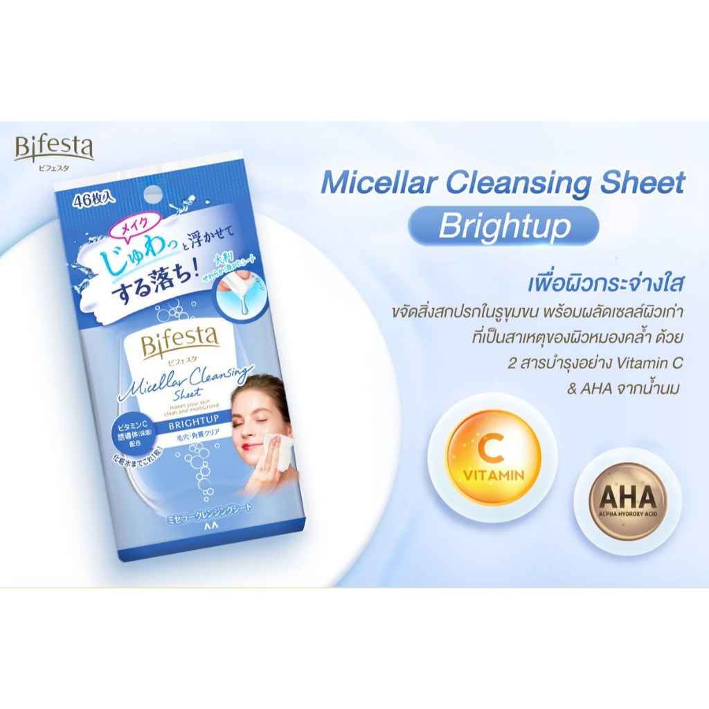 บิเฟสต้า ไบรท์อัพ เคลนซิ่ง ชีท 46 แผ่น / Bifesta Brightup Cleansing Sheet 46 Sheet