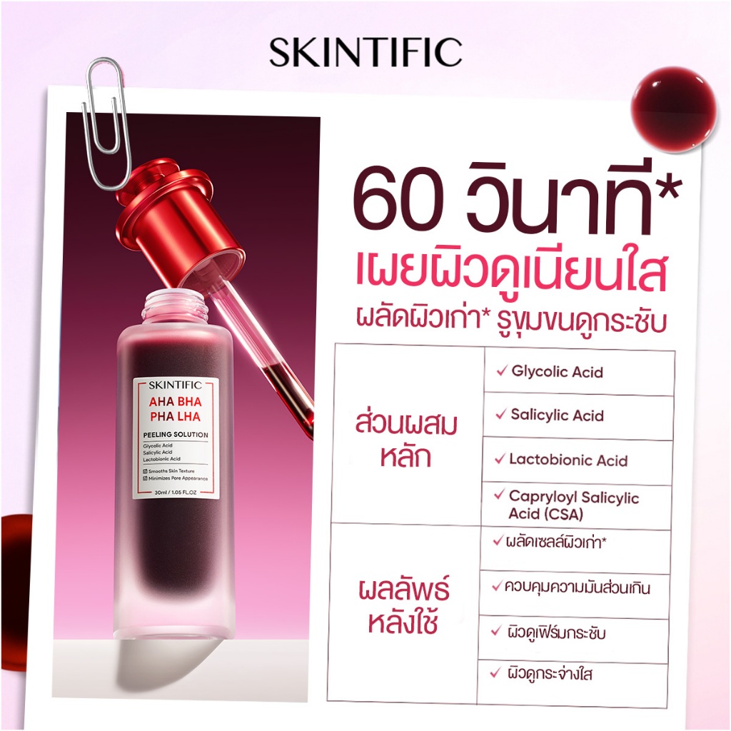 SKINTIFIC AHA BHA PHA LHA PEELING SOLUTION | ผลัดผิวเสีย เผยผิวดูเนียนนุ่ม รูขุมขนดูกระชับ อ ัพผิวดูกระจ่างใส
