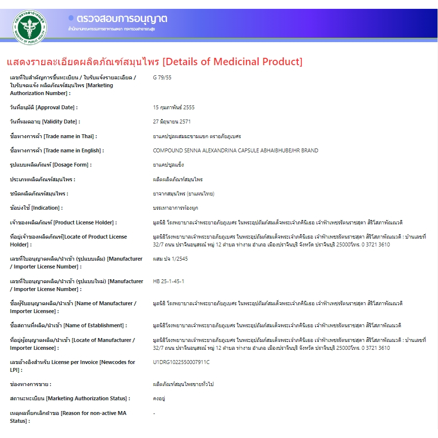 แคปซูล มะขามแขก อภัยภูเบศร ขนาด 10 แคปซูล (แผง) 1 แผง สามัญประจำบ้านแผนโบราณ