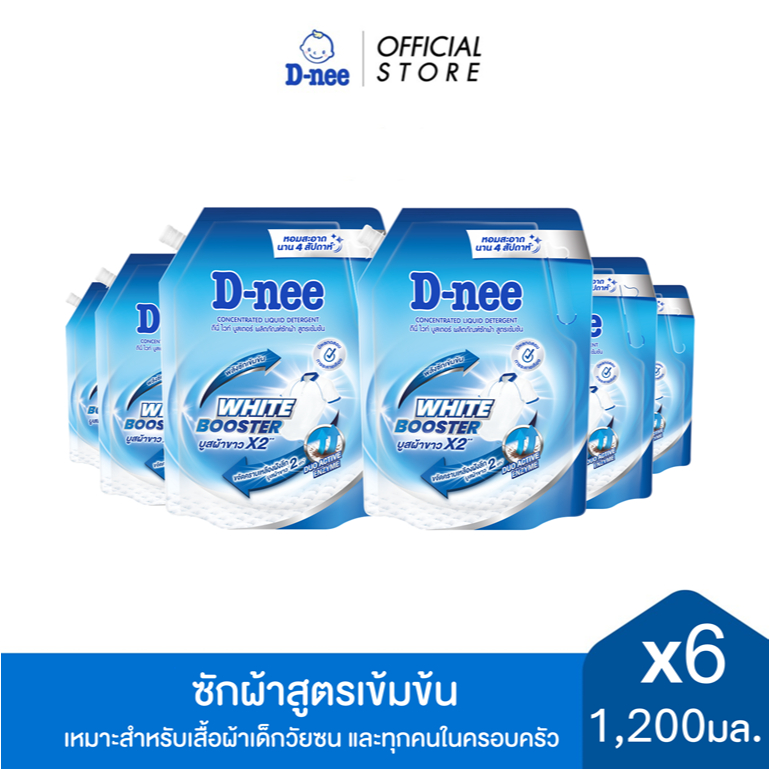 [แพ็ค 6] ดีนี่ ไวท์ บูสเตอร์ ผลิตภัณฑ์ซักผ้า สูตรเข้มข้น 1200 มล. สีน้ำเงิน