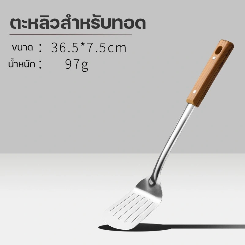 ตะหลิว ทัพพี กระบวย กระชอน วัสดุสแตนเลสหนา ด้ามจับถนัดมือ อุปกรณ์ทำอาหาร