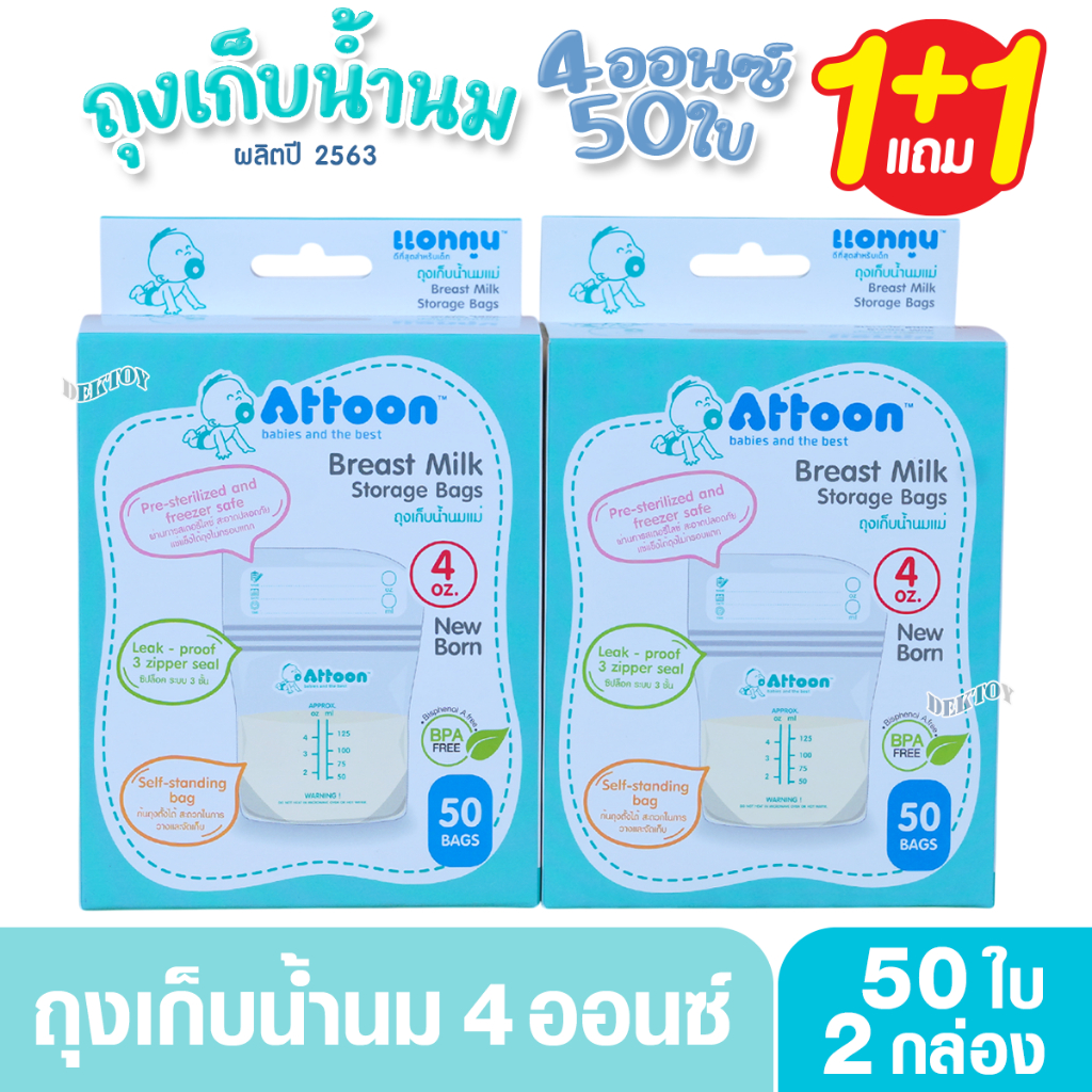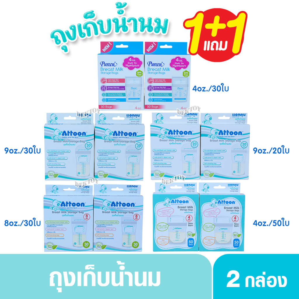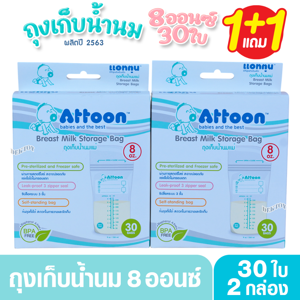 ลดล้างสต๊อกผลิตปี61-63 ATTOON แอทตูน ถุงเก็บน้ำนมแอทตูน4และ9 ออนซ์ 20/30/50ใบ