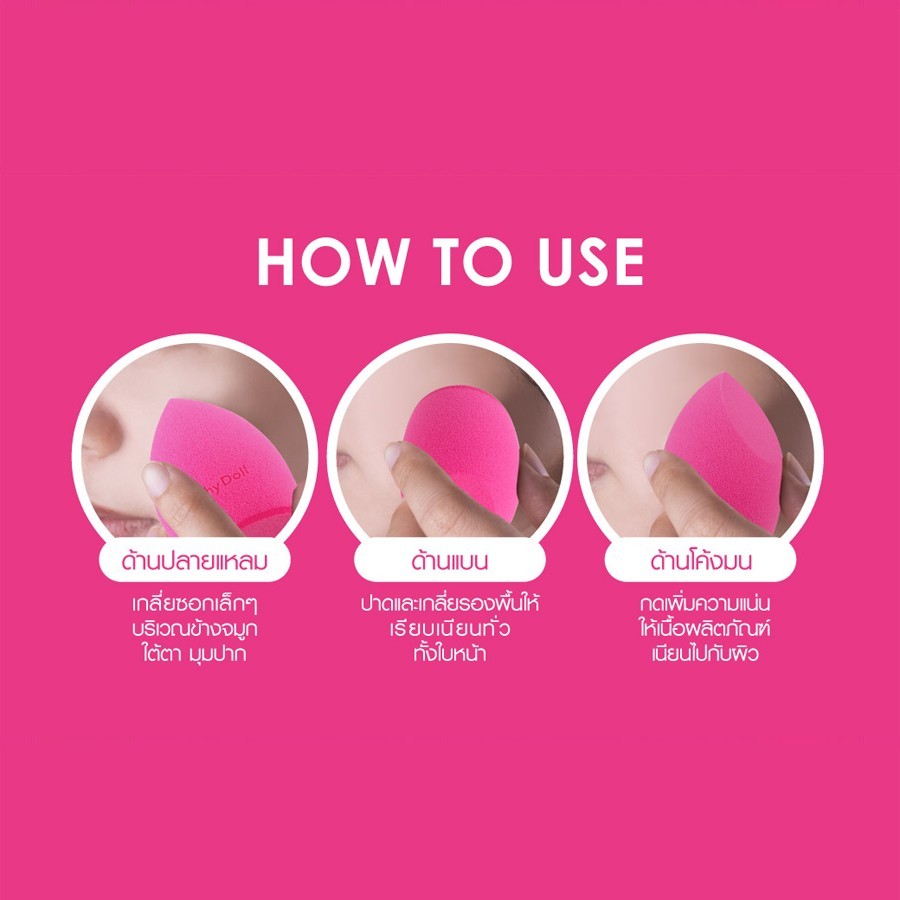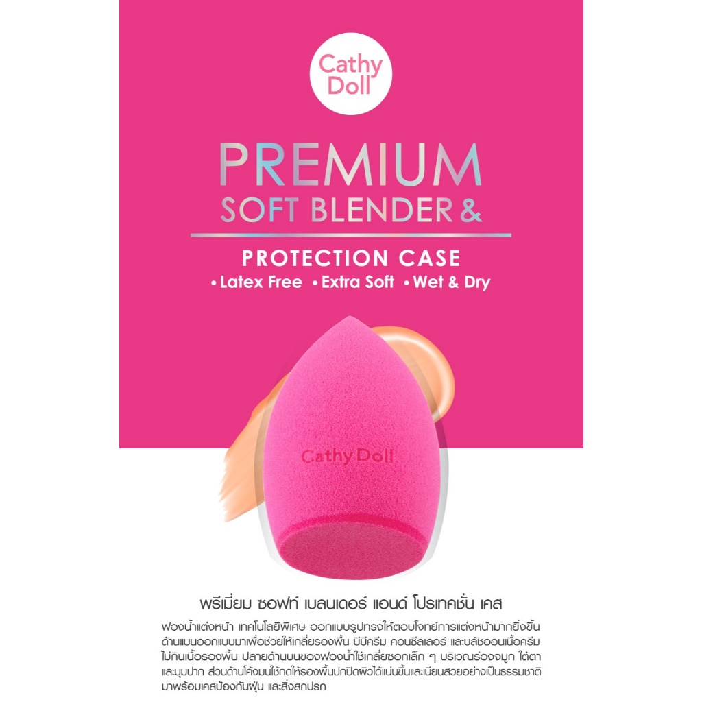 สีชมพู【ฟองน้ำแต่งหน้า】พรีเมี่ยมซอฟท์เบลนเดอร์ Cathy Doll Premium Soft Blender & Protection Case