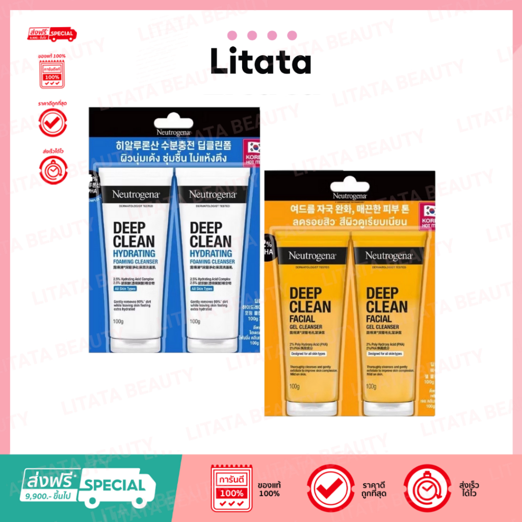 [แพ็คคู่] Neutrogena Deep Clean Cleanser 100 ml. นูโทรจีนา เจลล้างหน้า ดีพ คลีนเซอร์
