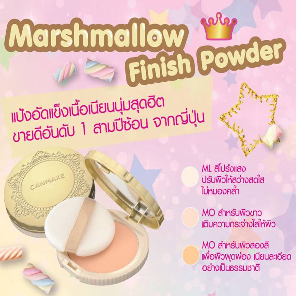 (ตลับกลม) CANMAKE Marshmallow Finish Powder 10g. แป้งอัดแข็งไม่ผสมรองพื้น เนื้อละเอียดดุจใยไหม