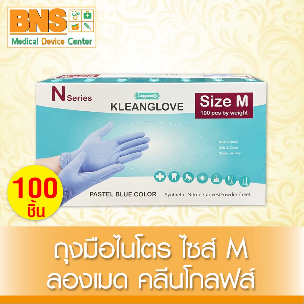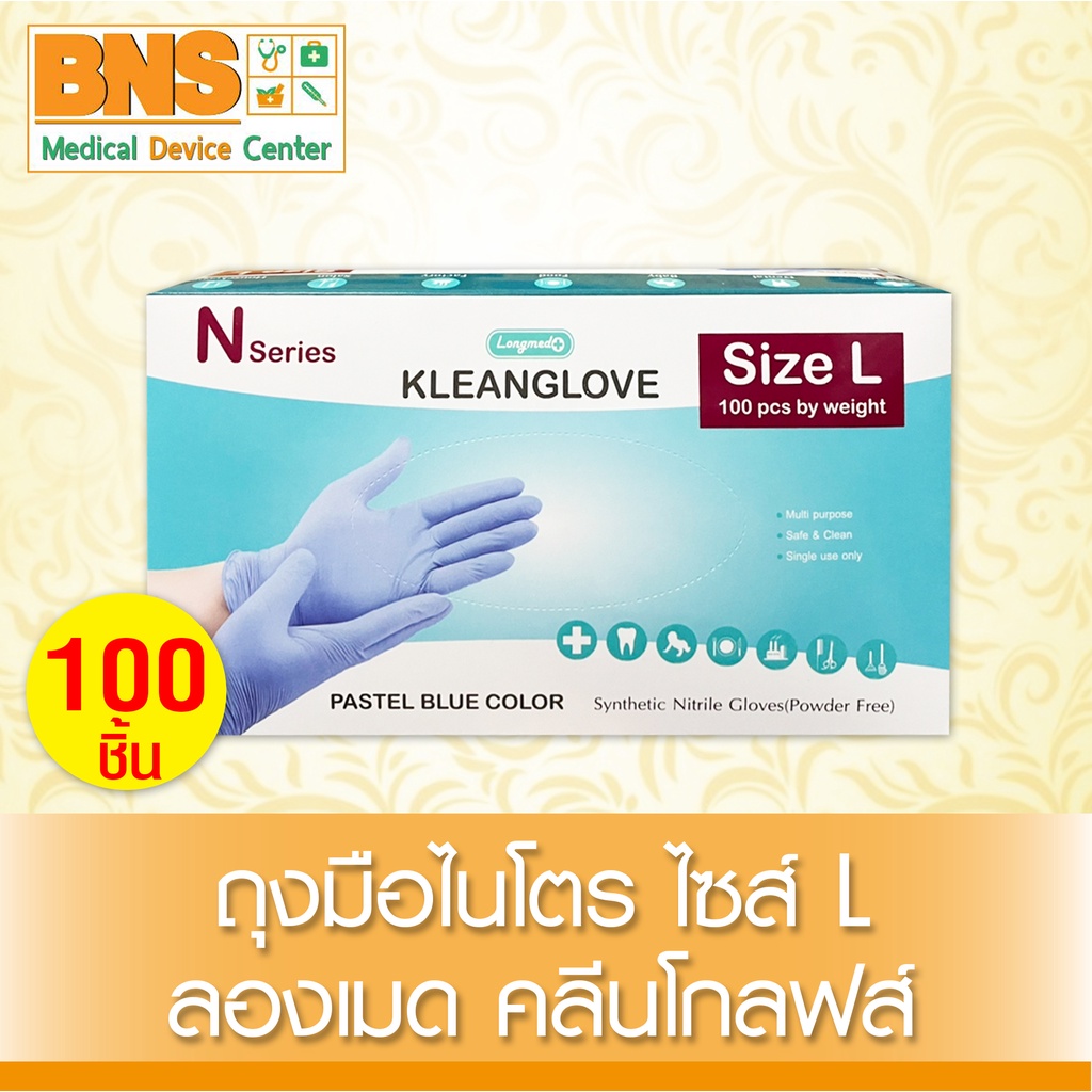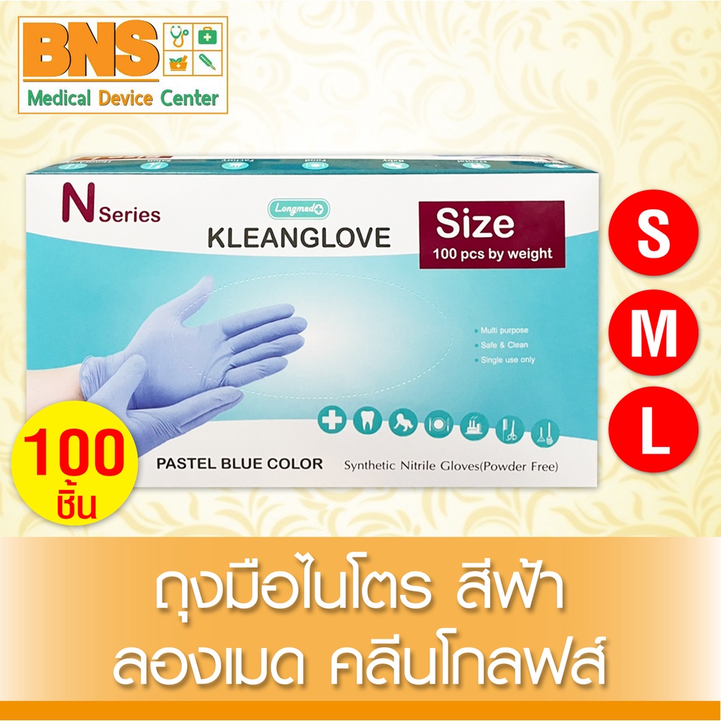 ส่งเร็ว !! ( 1 กล่อง 100 ชิ้น ) Kleanglove n pastel blue color (สีฟ้า) ถุงมือ ไนโตร ลองเมด คลีนโกลฟส์ (ถูกที่สุด)