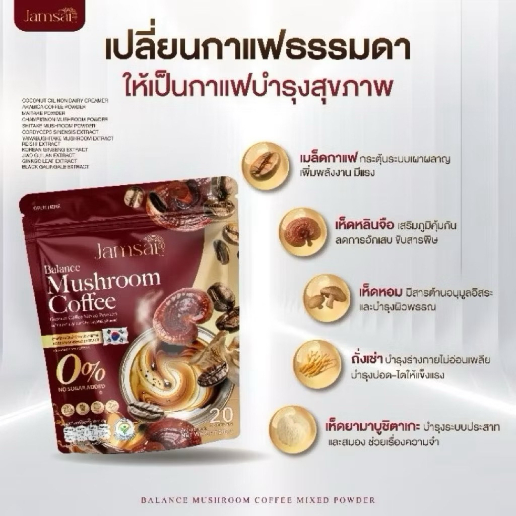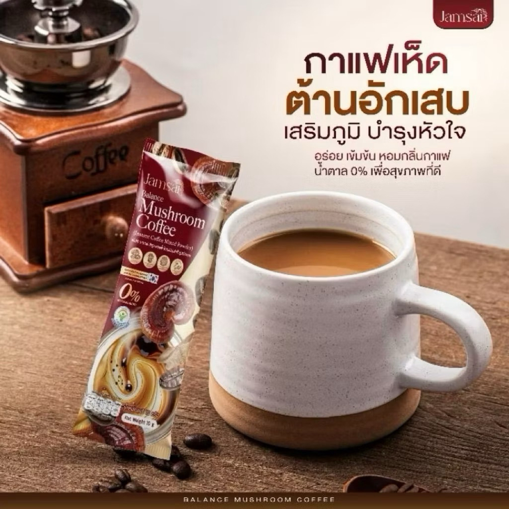 กาแฟเห็ดแจ่มใส Jamsai Balance Mushroom Coffee (1ห่อมี 20 ซอง)