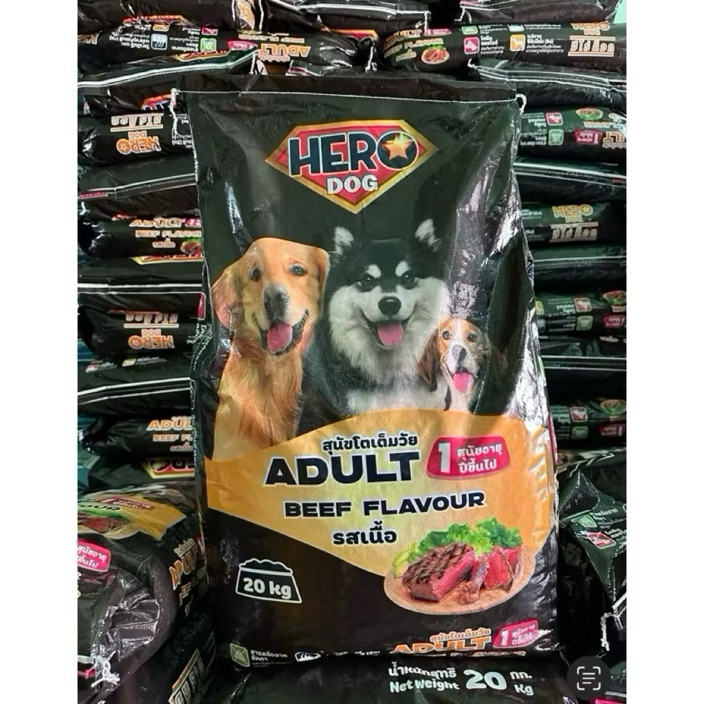 อาหารสุนัขฮีโร่ด๊อก รสเนื้อ ขนาด 20kg โปรตีน 18% HERO DOG อาหารสุนัขโตทุกสายพันธุ์ (กระสอบสีดำ)