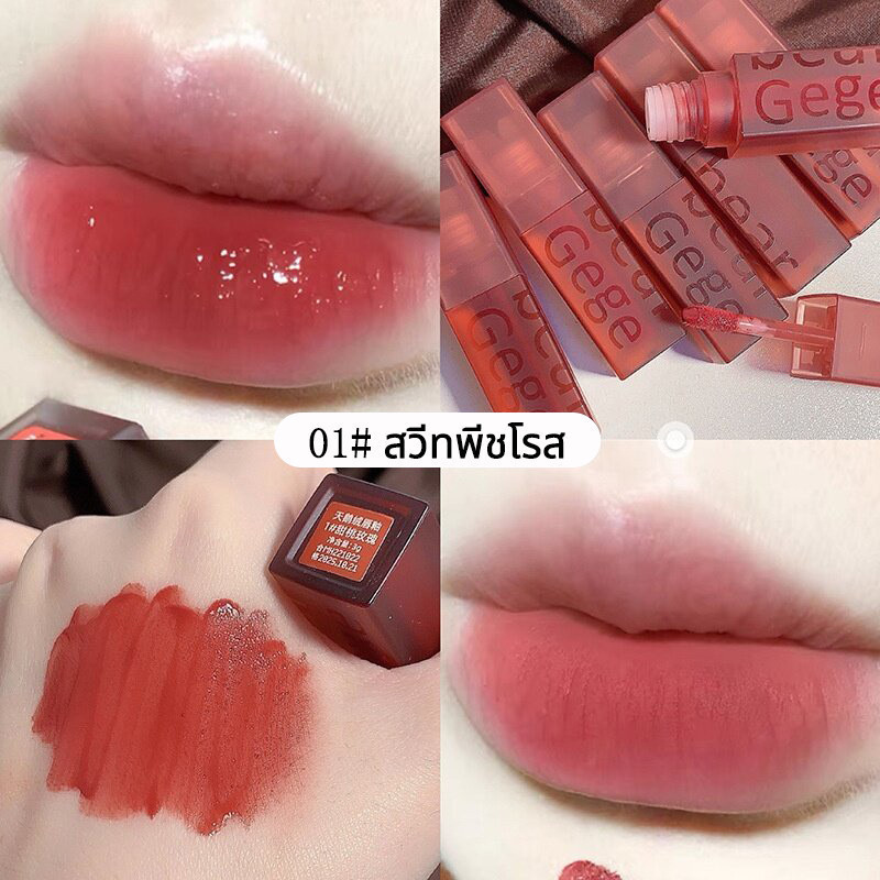 ✨ถูกสุดๆ✨Gegebear ลิปกลอสทิ้นต์ เนื้อแมตต์-นุ่ม ให้ความชุ่มชื้น ติดทนนาน ไม่เหนียวเหนอะหนะ 4สี