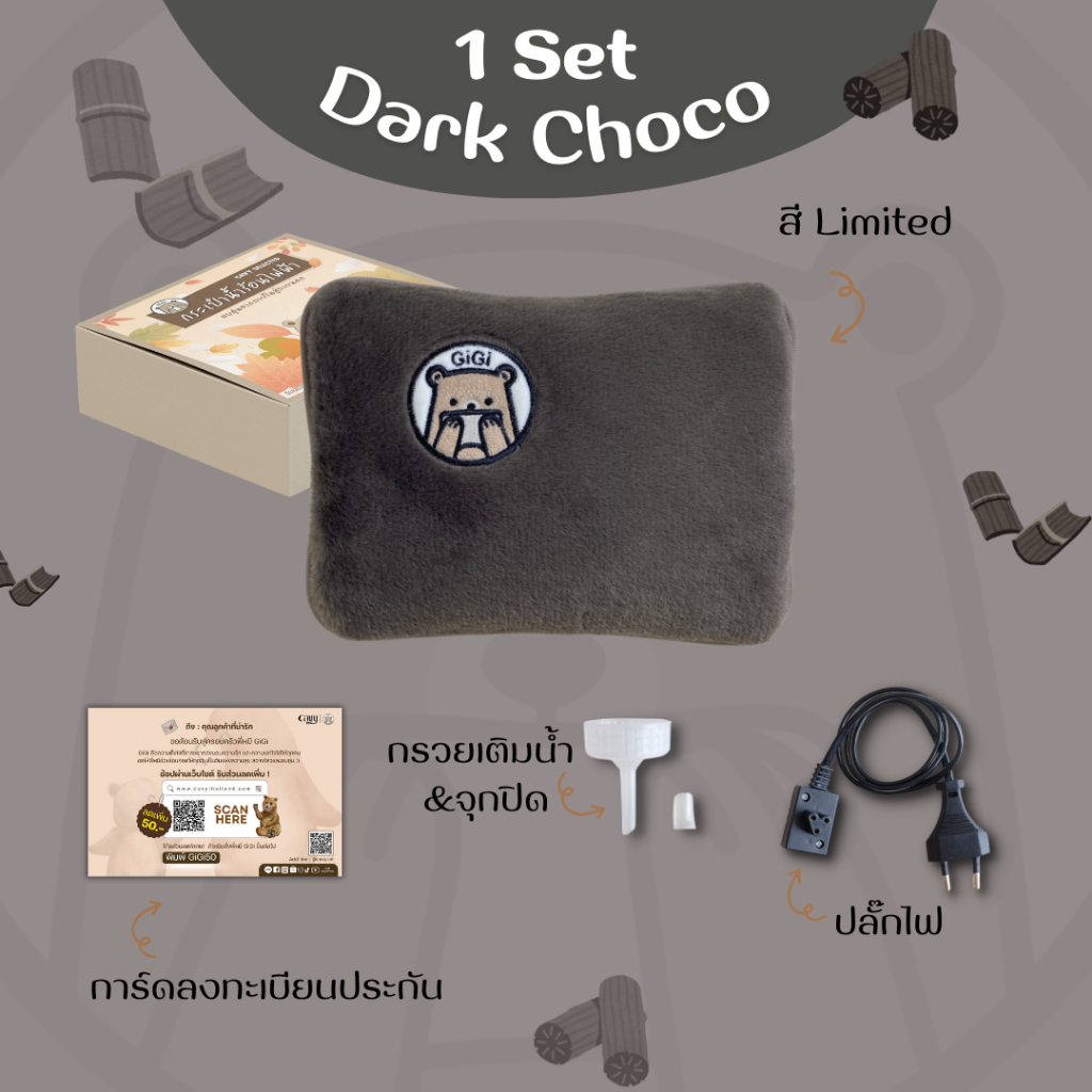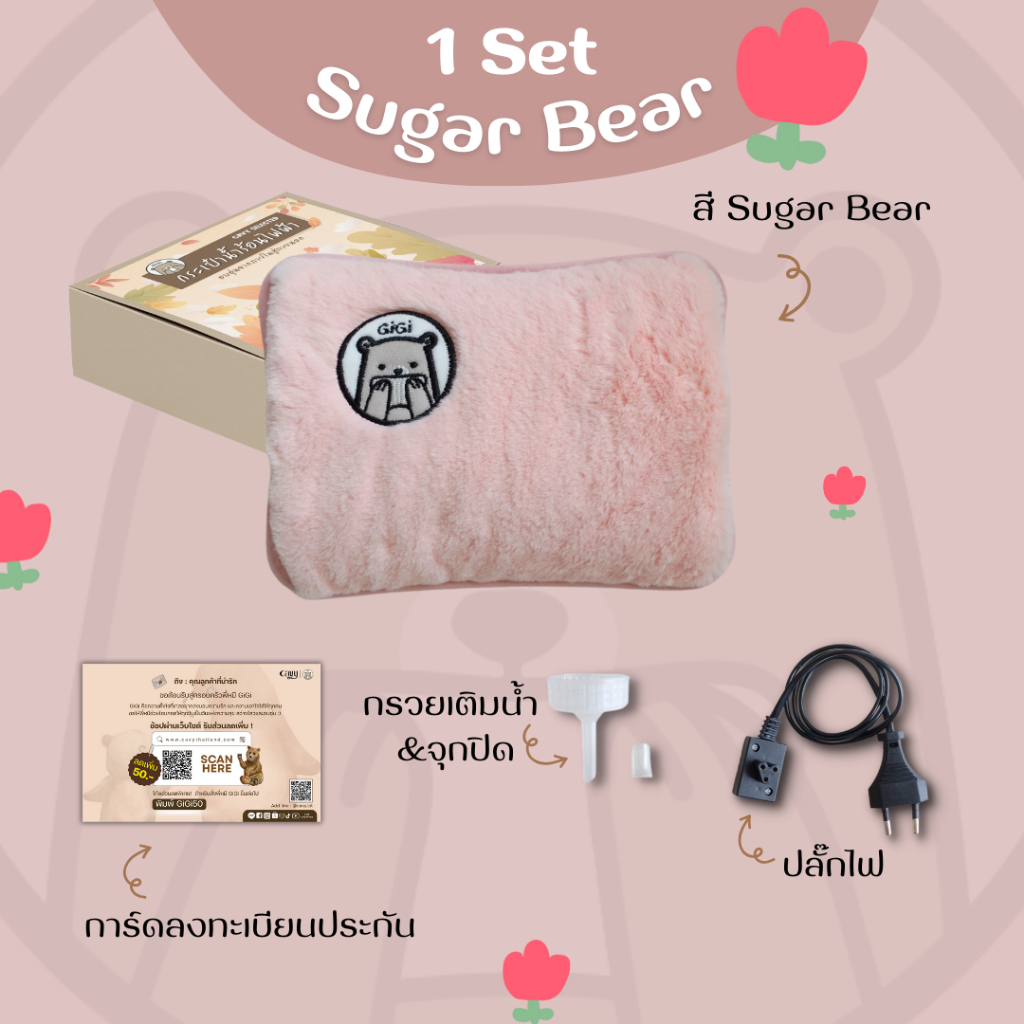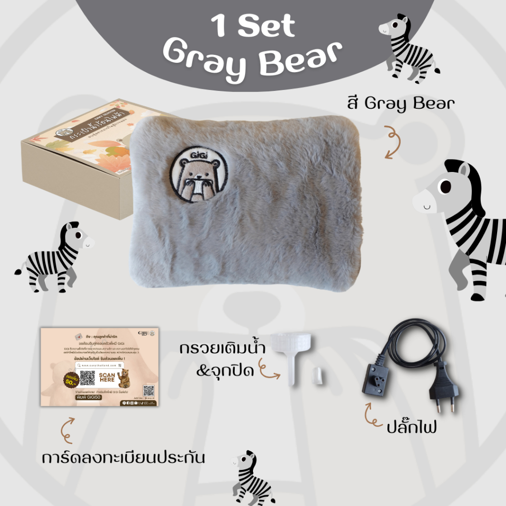 กระเป๋าน้ำร้อนไฟฟ้า พี่หมี Gigi (กิกิ) ขนนุ่มนิ่ม คุณภาพเกรดพรีเมี่ยม มีให้เลือก 4 แบบ