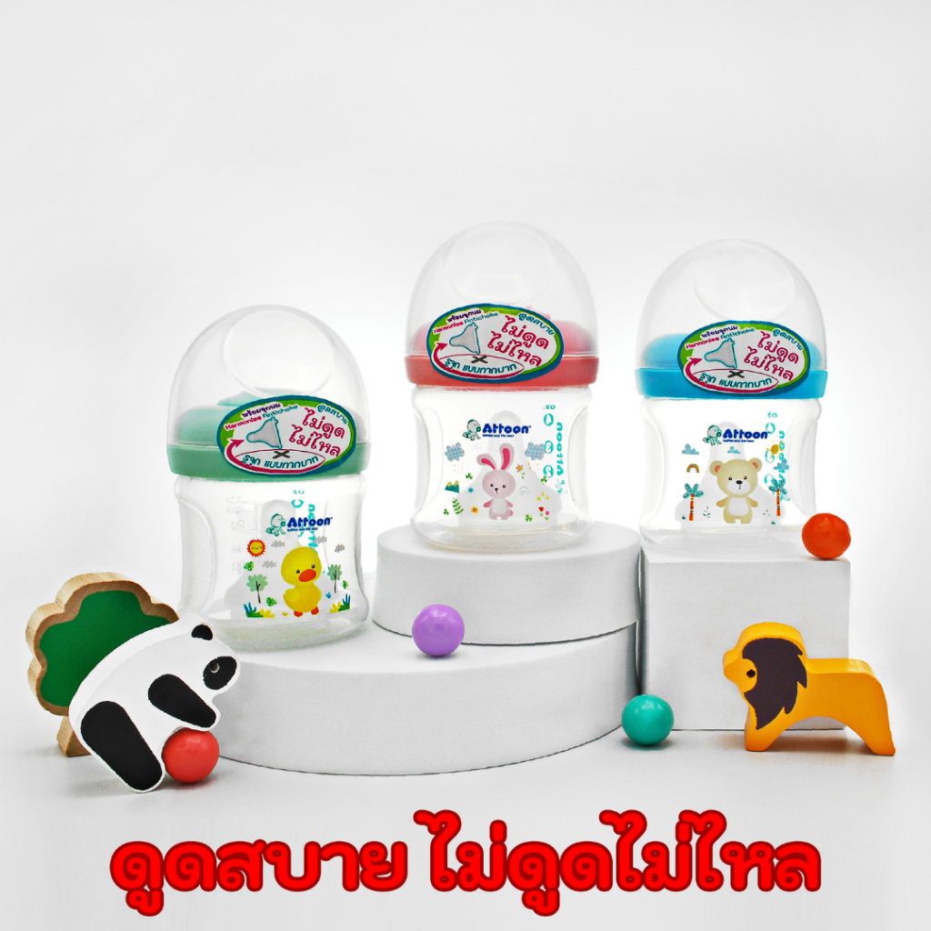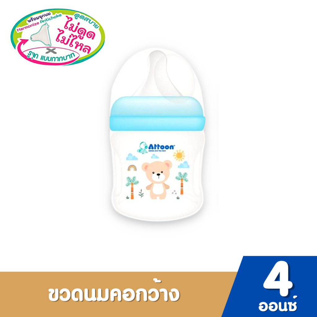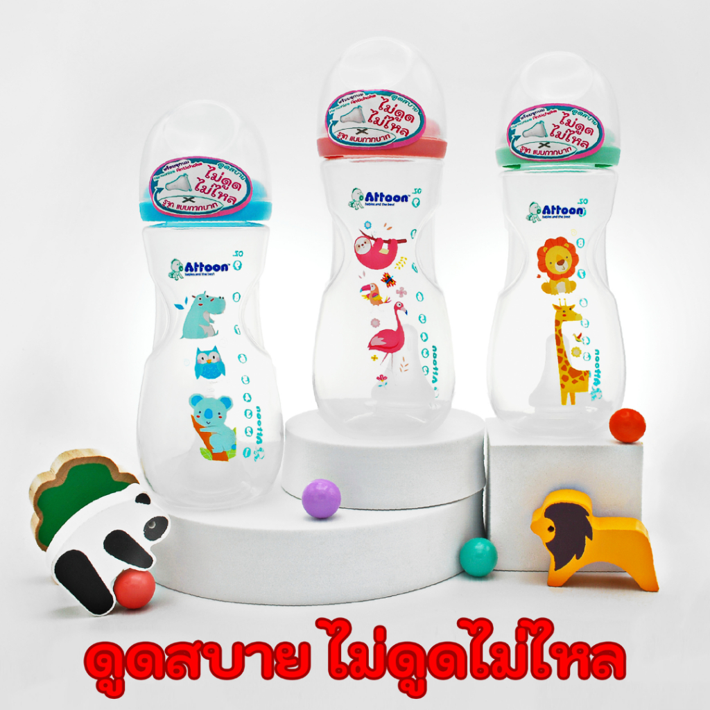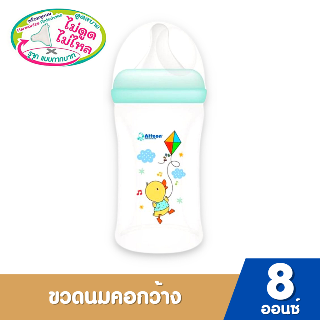 [จุกไม่ดูดไม่ไหล] Attoon ขวดนมคอกว้าง ขวดนมคอแคบ แอทตูน รุ่น Antichoke ขวดนมเด็ก พร้อม จุกนมรูกากบาท