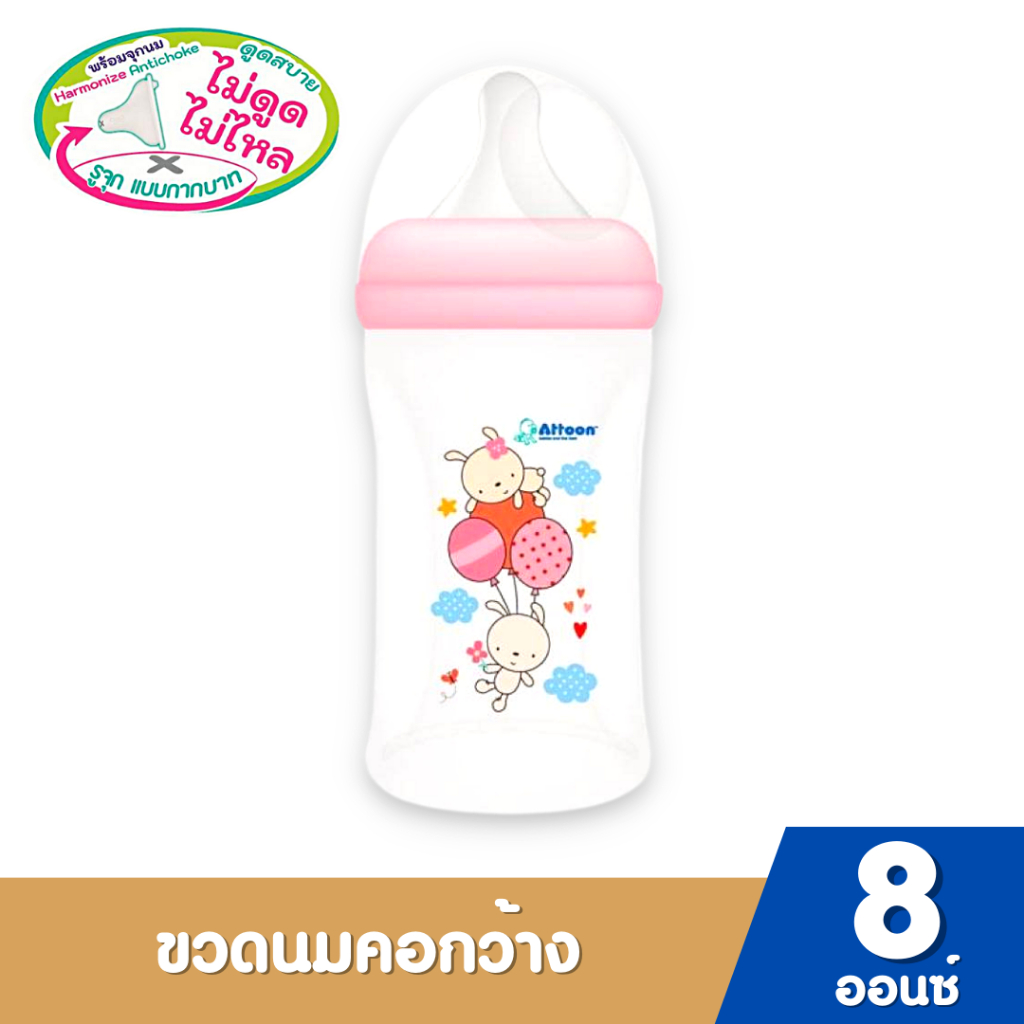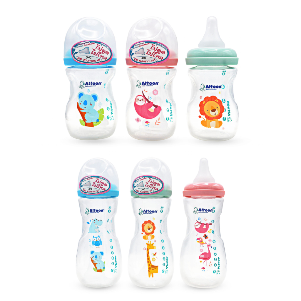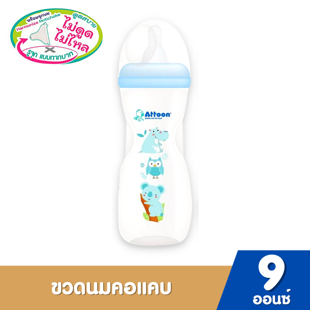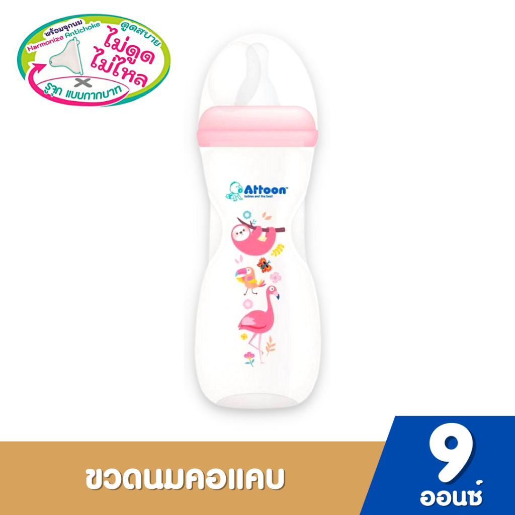 [จุกไม่ดูดไม่ไหล] Attoon ขวดนมคอกว้าง ขวดนมคอแคบ แอทตูน รุ่น Antichoke ขวดนมเด็ก พร้อม จุกนมรูกากบาท