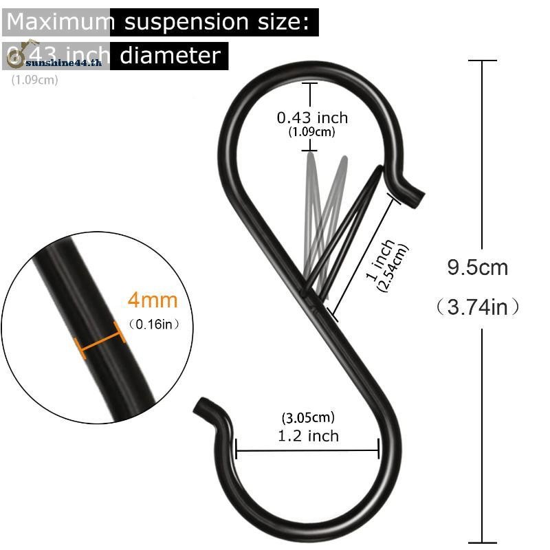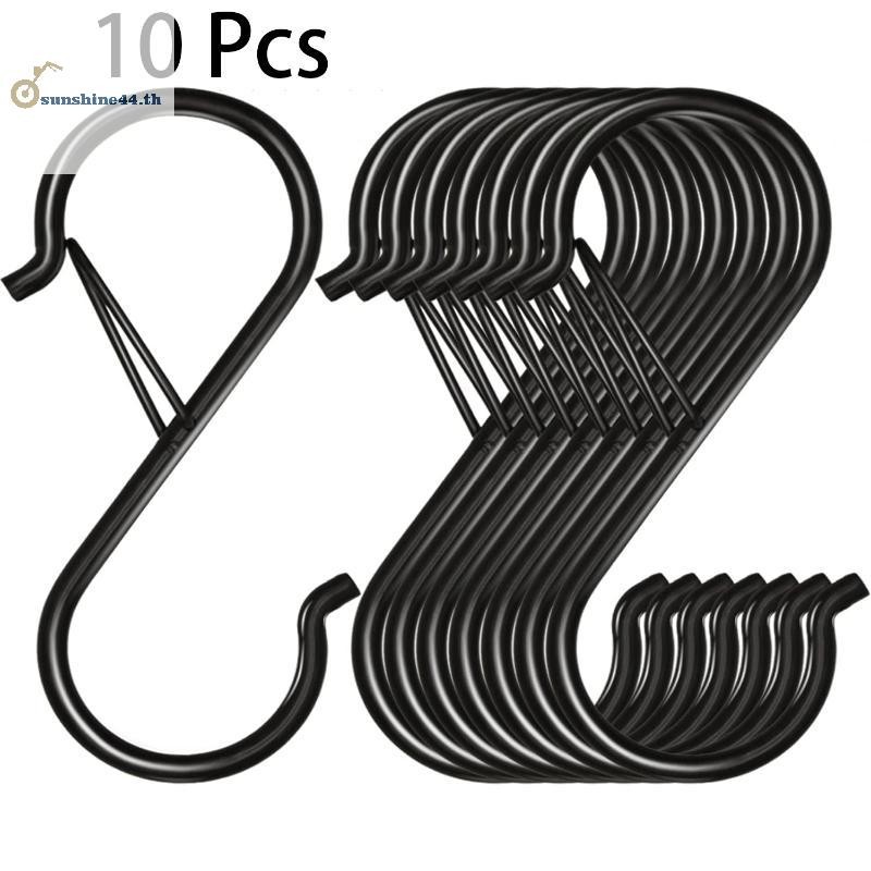 FOURSUN 10PCS S Hooks สําหรับสีดํา S Hooks Heavy-Duty ตะขอโลหะความปลอดภัยหัวเข็มขัดสําหรับพืช,ไฟ,เครื่องครัว,กระทะ,หม้อ,เครื่องครัว,เสื้อผ้า