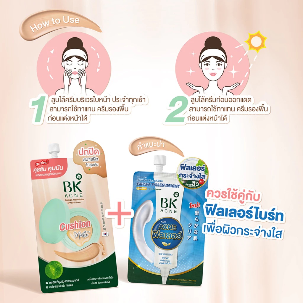 (1 ซอง) BK Acne Cushion AntiPollution SPF50+ PA++ คุชชั่น BK คุชชั่นสิว (ปริมาณ 7 กรัม)