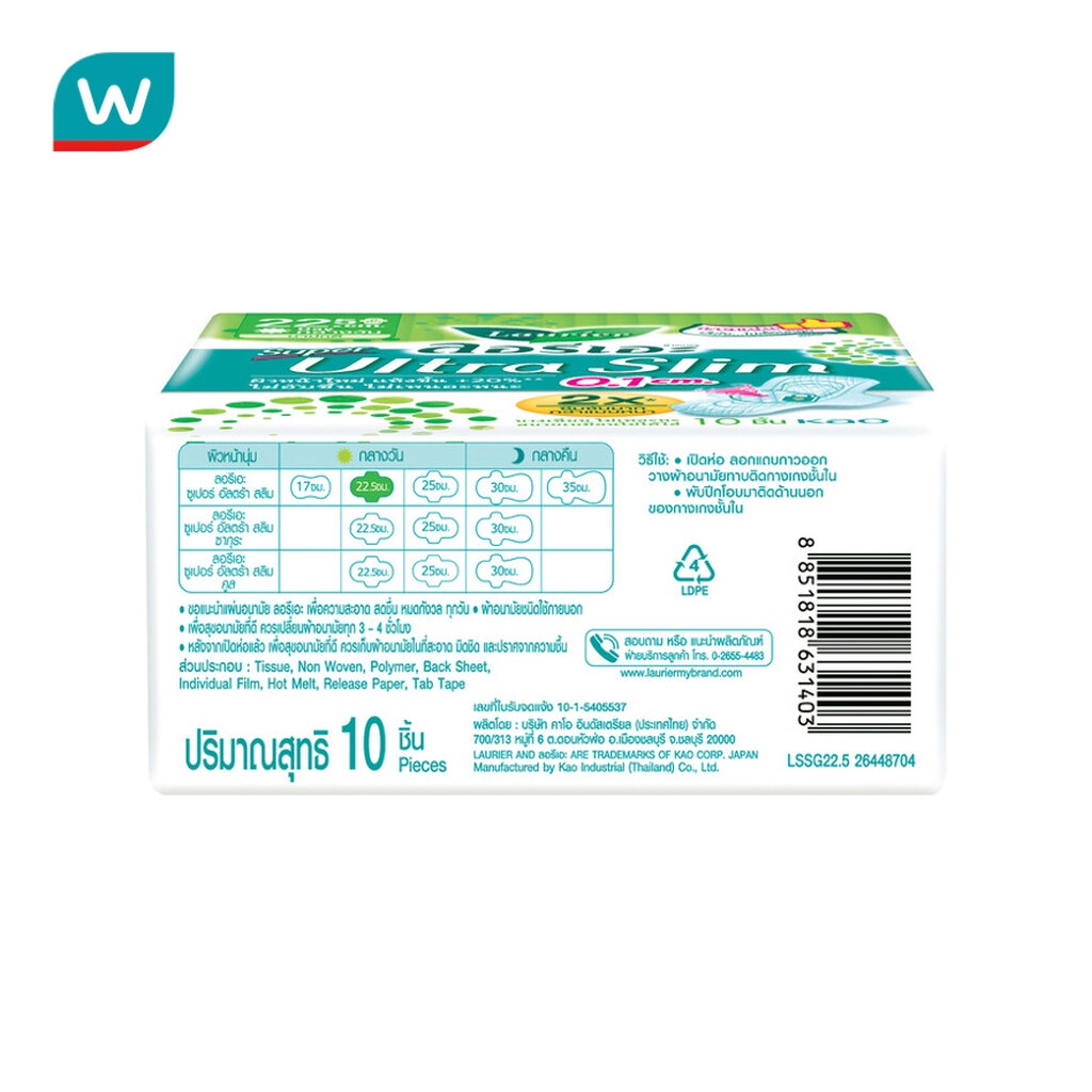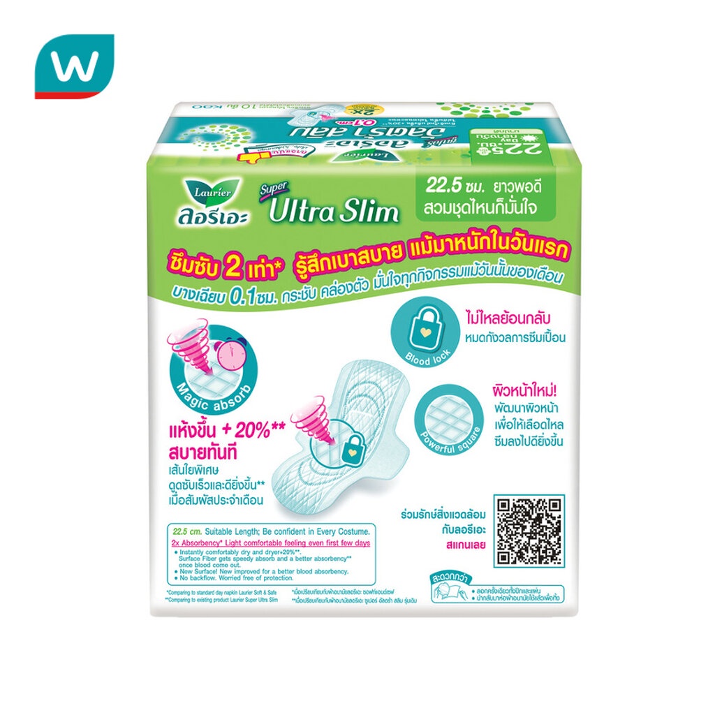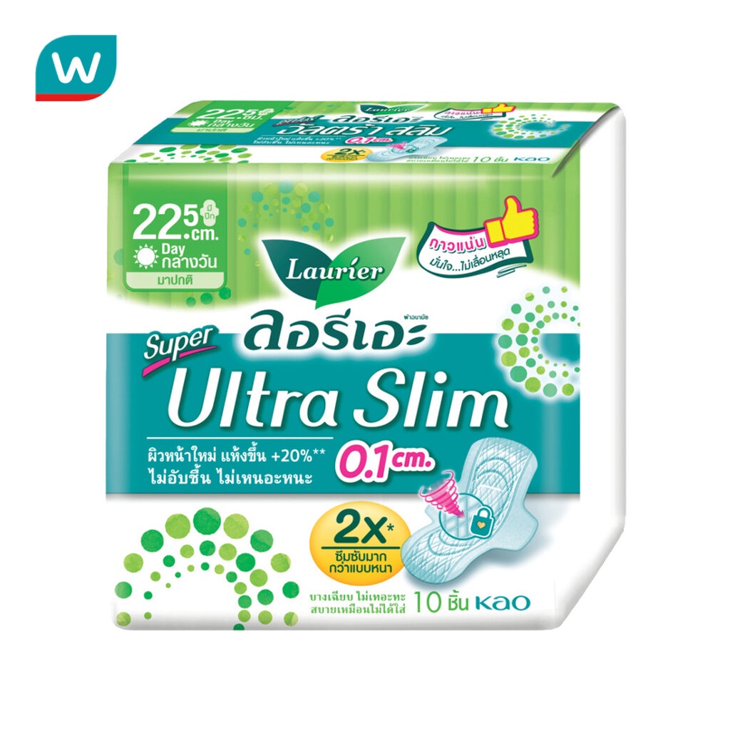 Laurier ลอริเอะ ผ้าอนามัย ซูเปอร์ อัลตร้า สลิม 22.5 ซม.มีปีก 10 ชิ้น